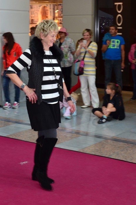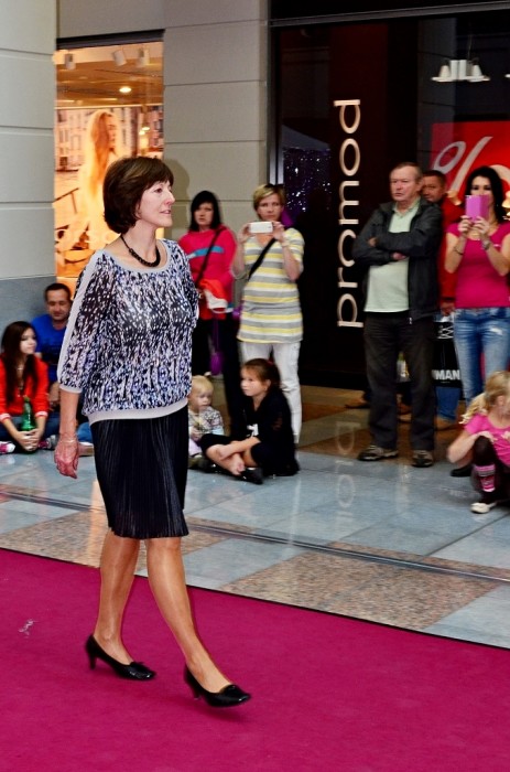 A najednou jsem stála před třpytivou dekorací a bílou lavičkou, kterou na podporu projektu Mama Help pomalovala Chantal Poullain. Nevnímala jsem atmosféru kolem sebe, nesledovala jsem ani přede mnou jdoucí modelky, jen se mi pod kůži, až do morku kostí vrýval rytmus hudby, která modelky provázela. V mžiku jsem si řekla, jak je to dnes v módě, „Jitko to dáš!“ a rázným krokem jsem vykročila po červeném koberci. Po prvních krocích jsem začala vnímat úžasnou reakci diváků a tréma byla tatam. Moji velkou premiéru jsem měla úspěšně za sebou a těšila jsem se na další výstupy tohoto velkého dne.