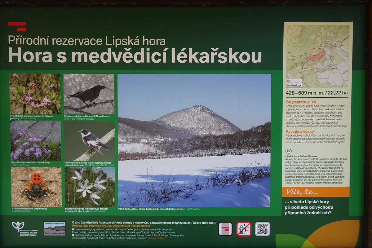 Start v Děkovce, zřícenina hradu Oltářík, dále po červené přes Lhotu na Lipskou horu, dále Medvědice, Kocourov, pod Ostrým do Března na autobus