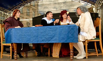 Divadelní scénky společnosti Nova Domus zavedly diváky k hodovnímu stolu Viléma Slavaty i do místního špitálu, aby pod názvem „Jak se brambory do Hradce dostaly“ z cyklu Večerní toulky bájným Hradcem zmapovaly historii brambor v Jindřichově Hradci.