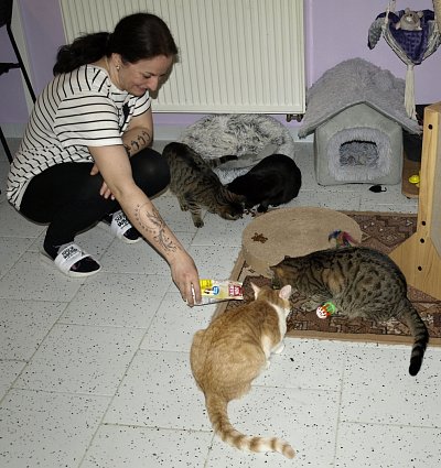 Jen ve zkratce. Kočičkám se daří dobře, hosté si pomalu začínají nacházet cestu na nové působiště kavárny, k osazenstvu přibyla jedna nová micinka.