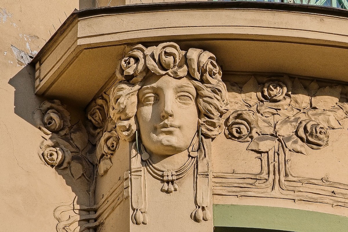 24. 1. 2026Je to možná deset let, co jsem zvedla oči od šedivého chodníku a učarovaly mi štukové detaily fasád domů z období secese a historismu. Zjistila jsem, že z nich na člověka hledí nejen něžné tváře dívek, ale též mužní siláci a vousatí starci. Nechybí ani postavy z mytologie a pohádek. Kolem oken a dveří se často vinou girlandy květů a ovoce, někde i nebezpečně vyhlížející hadi. Občas tu dovádějí celé skupinky baculatých putti, nebo roztahují perutě draví ptáci. Když budete pozorní, objevíte i sovy, žabky a další zvířata.