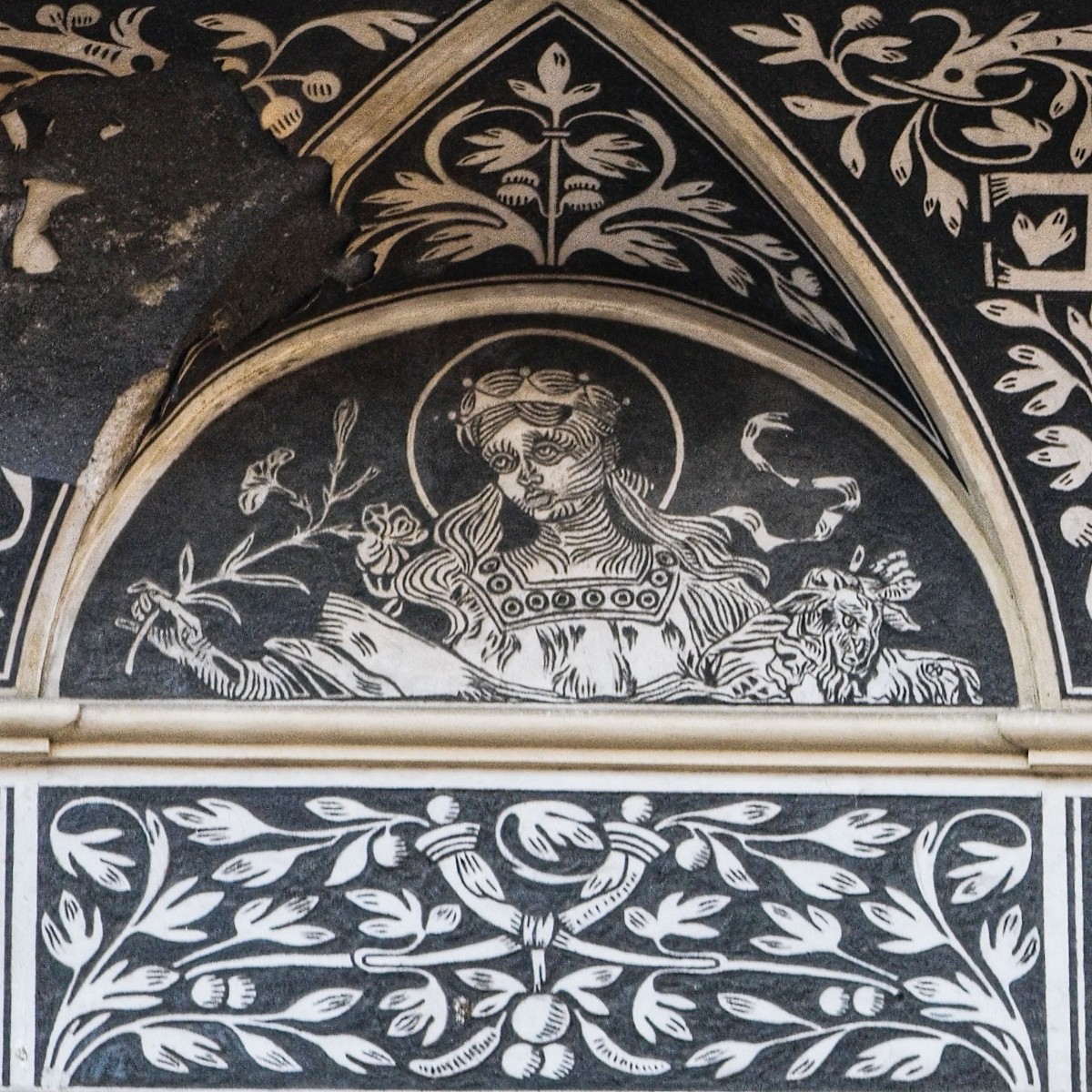 Neorenesanční fara u sv. Petra, fasáda arch. Antonín Wiehl, 1893 - Praha 1, Biskupská 1137/13 - kartony ke sgrafitovým malbám s postavami českých patronů, provedli L. Novák a K. V. Mašek.