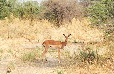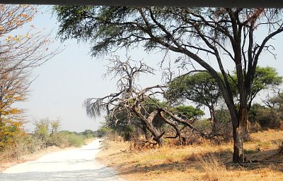 Na jižní okraj delty Okavango jsme jeli individuálně s řidičem a průvodcem. Já jsem byla v kabině s řidičem. Méně prachu a pocit bezpečí při setkání s divokými zvířaty. Manžel, který seděl na drsné lavici na korbě s průvodcem, trpěl bolestí páteře, která mu vystřelovala až do prstů nohou a byla doprovázena nepříjemným brněním. Zdá se to neskutečné, ale nadskakování našeho vozidla ho z tohoto neduhu téměř vyléčilo. Pravděpodobně došlo k pohybu obratlí, které uvolnily skřípnutý nerv a bolest zmizela. Jeden z velkých výmolů ovšem manžela vyhodil do vzduchu tak vysoko, že se udeřil do temene hlavy o železný rám střechy pod plachtou, která nás chránila před sluncem. Zastavili jsme. Manželovi tekla na čele krev, poranil se totiž o suchý zip, kterým byla připevněna plachta. Na hlavě mu naskočila boule. Řidič z toho byl nešťastný, já jsem byla strachy bez sebe, ale nakonec z toho nic vážného nebylo a řidič dostal i svoje spropitné, ze kterého žil.