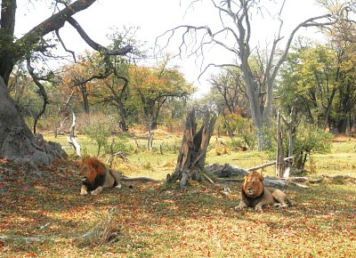 Abychom se dostali do přímého kontaktu s Okavangem, vystoupili jsme v bezpečné vzdálenosti od lvů z auta. Vzduch se tetelil horkem, všude spousta much. Využili jsme této přestávky a zeptali jsme se průvodce, zda je lev skutečným králem zvířat nebo zda ho může některé jiné zvíře zabít. Průvodce projevil o toto téma živý zájem. "Vy jste to asi viděli pouze v televizi, ale já to znám všechno přímo z přírody." Nadšeně nám vylíčil, k čemu všemu může v africké divočině dojít. Pokud jde o slony, lvi se vyhýbají zdravým dospělým jedincům. Mohou zkoušet ulovit slůňata, ale dospělí sloni je snadno odeženou. Nosorožci v boji se lvem vždy zvítězí. Jsou silní, mohutní a velmi obranní. Lvi proto napadají dospělé nosorožce velmi zřídka. Útok nosorožce stačí k okamžitému ukončení boje. V případě buvolů záleží na počtu, buvol často vyhrává v souboji jeden na jednoho. Jeden buvolí býk může vážit téměř tunu a je známý svou agresivitou. Skupina lvů však buvola skolí, ale často s poraněním. Buvoli patří mezi nejnebezpečnější kořist, kterou lvi pravidelně loví. V Okavangu jsou hojní hroši. Chrání si své uzemí, zejména v blízkosti vody. Lvi se dospělým hrochům vyhýbají. Pouze oslabení nebo izolovaní hroši jsou zranitelní. Pokud jde o krokodýly, ve vodě nemá lev šanci, ale na souši si s krokodýlem poradí. Osamoceného lva dokážou přemoci velké a dobře organizované smečky hyen. Ve vzácných případech může lva zabít i žirafa. Lvi žirafy loví, ale musejí být opatrní. Dobře mířený kop žirafy může lva vážně zranit nebo i zabít. Ve zcela ojedinělých případech se to může podařit i zebře. Takže je vidět, že to lev ve své královské roli nemá úplně jednoduché.