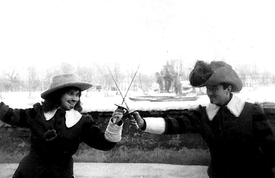 Nelahozeveský masopust. Jiří s kolegyní z našeho šermířského oddílu
