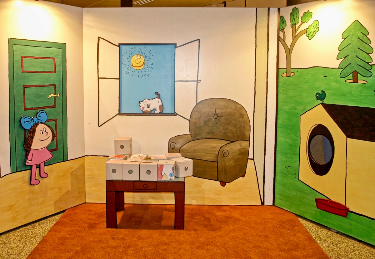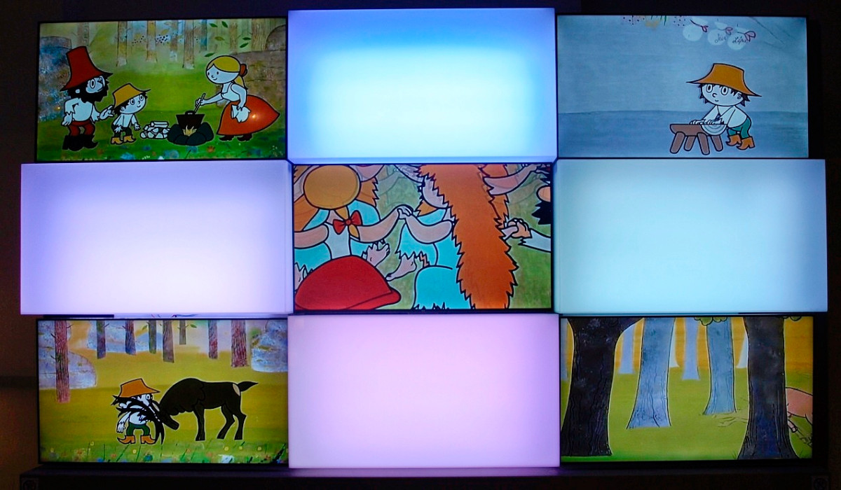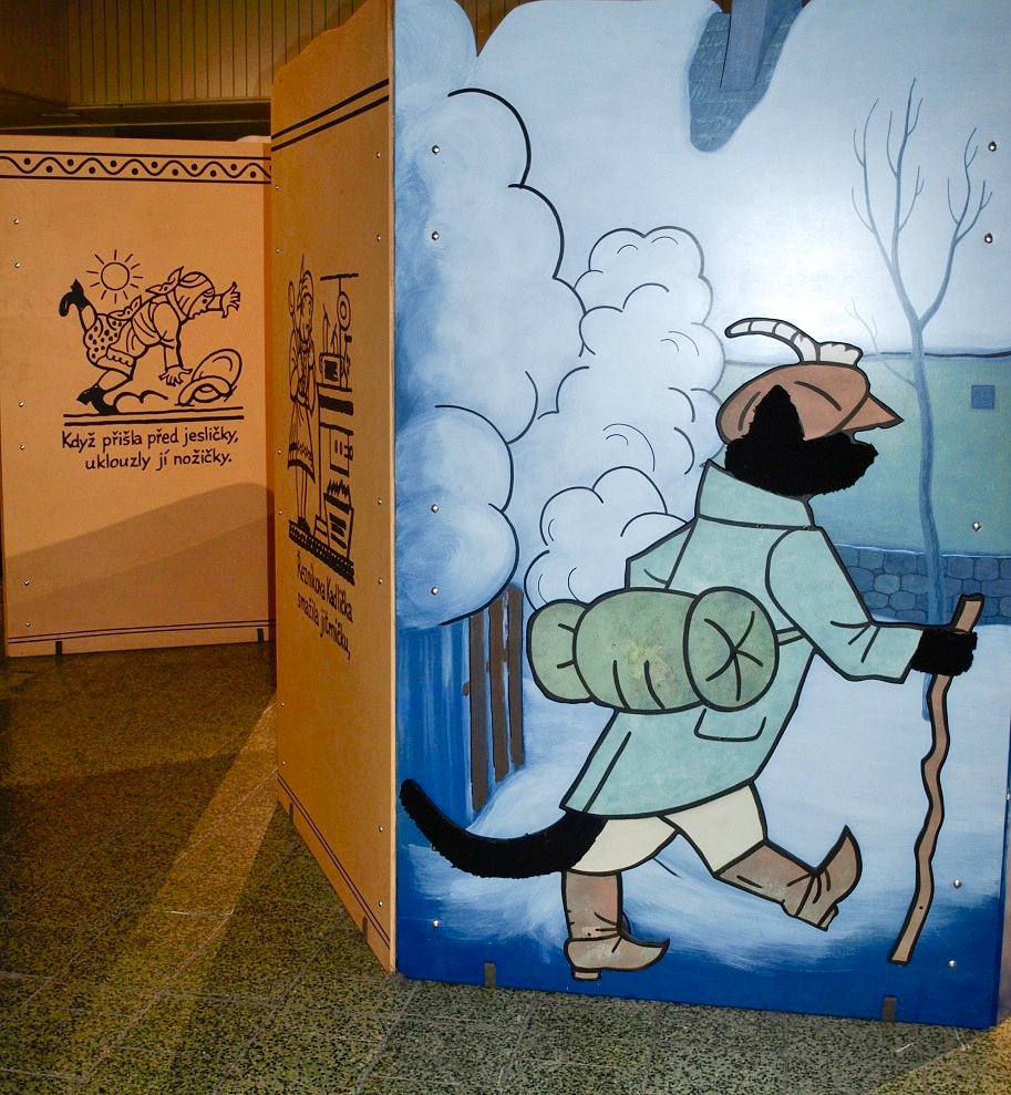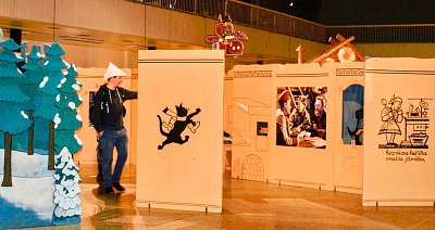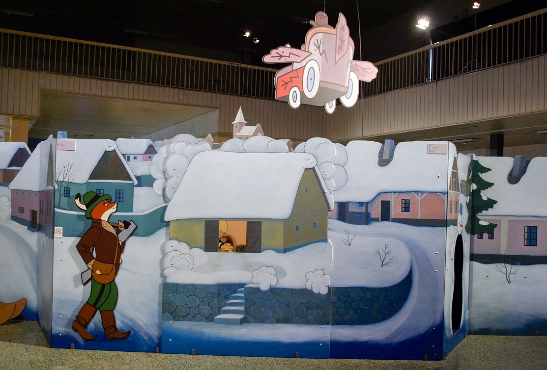 Přesně tak to vypadá v pavilonu H. Procházka vede mezi ručně malovanými kulisami, vitrínami v podobě televizních obrazovek či panely s připomínkou nejvýznamnějších večerníčkových tvůrců, představitelů, dabérů ....