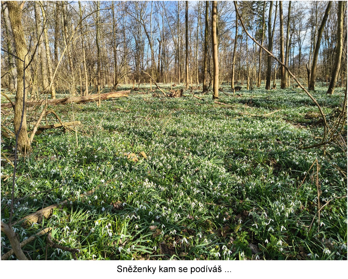 Sněženka podsněžník, jak zní celé její jméno, má ráda vlhko a klid lužních lesů. Jedno z míst, kde sněžek roste tolik, že to vypadá, jako kdyby nasněžilo, mám skoro u nosu. Na břehu Labe v Dobříni se rozkládá dnes už jen zbytek prastarého lužního lesa. Každoročně brzy zjara rozkvete ohromným množstvím něžných bílých kvítků. Chodím tam léta letoucí každý rok a zas a znovu žasnu nad jejich krásou.
