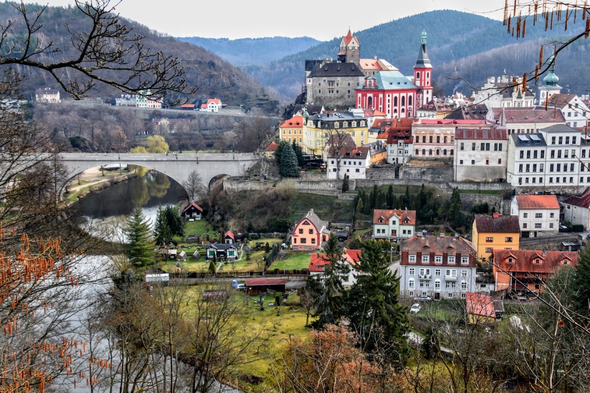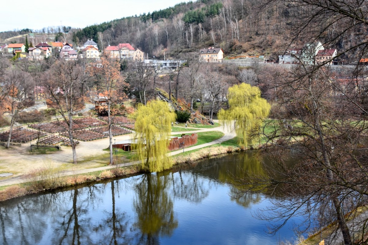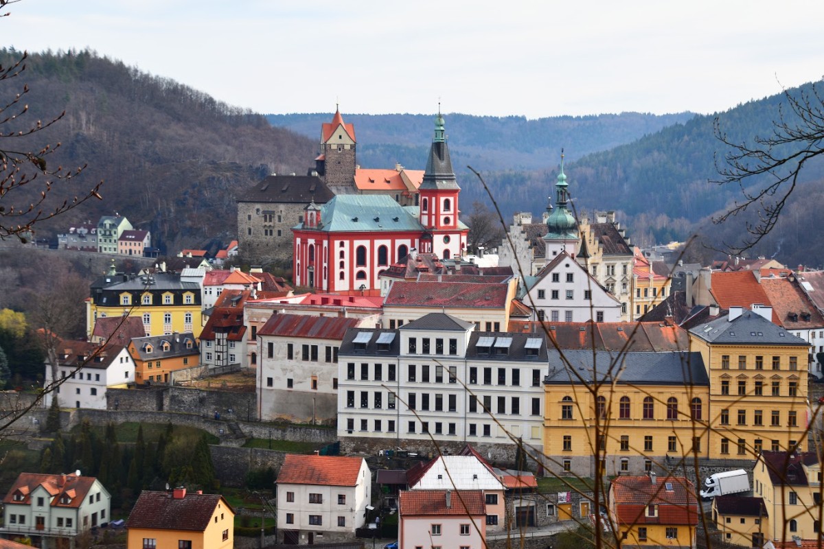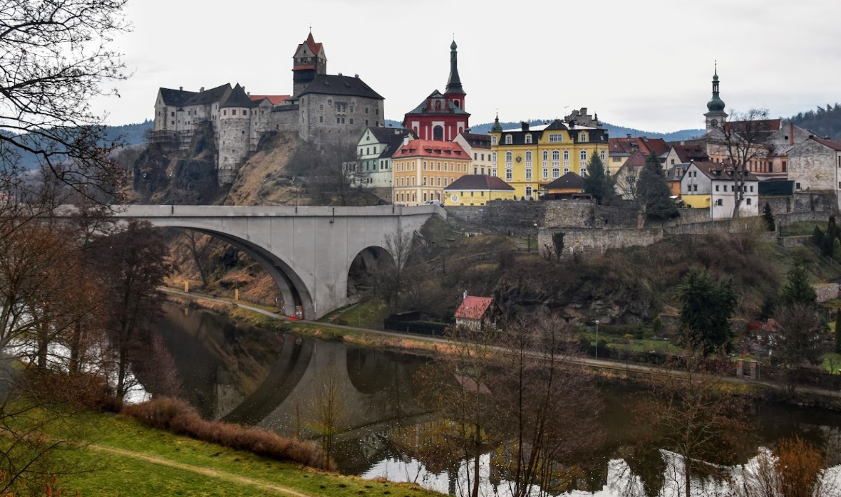 Včera se udělalo trochu lépe a tak jsme po delší době jeli navštívit středověké město a hrad Loket. Leni šla rovnou po mostě do města a já se vydal nahoru na vyhlídkovou trasu. Musel jsem vynaložit větší úsilí, ale stálo to za to. Pak jsem podle potůčku sešel dolů a po řetězovém mostě se dostal do města.Byla to krásná a zajímavá procházka. Na kopci byl vidět i motokrosový areál. Pak jsme se sešli na náměstí a kochali se.