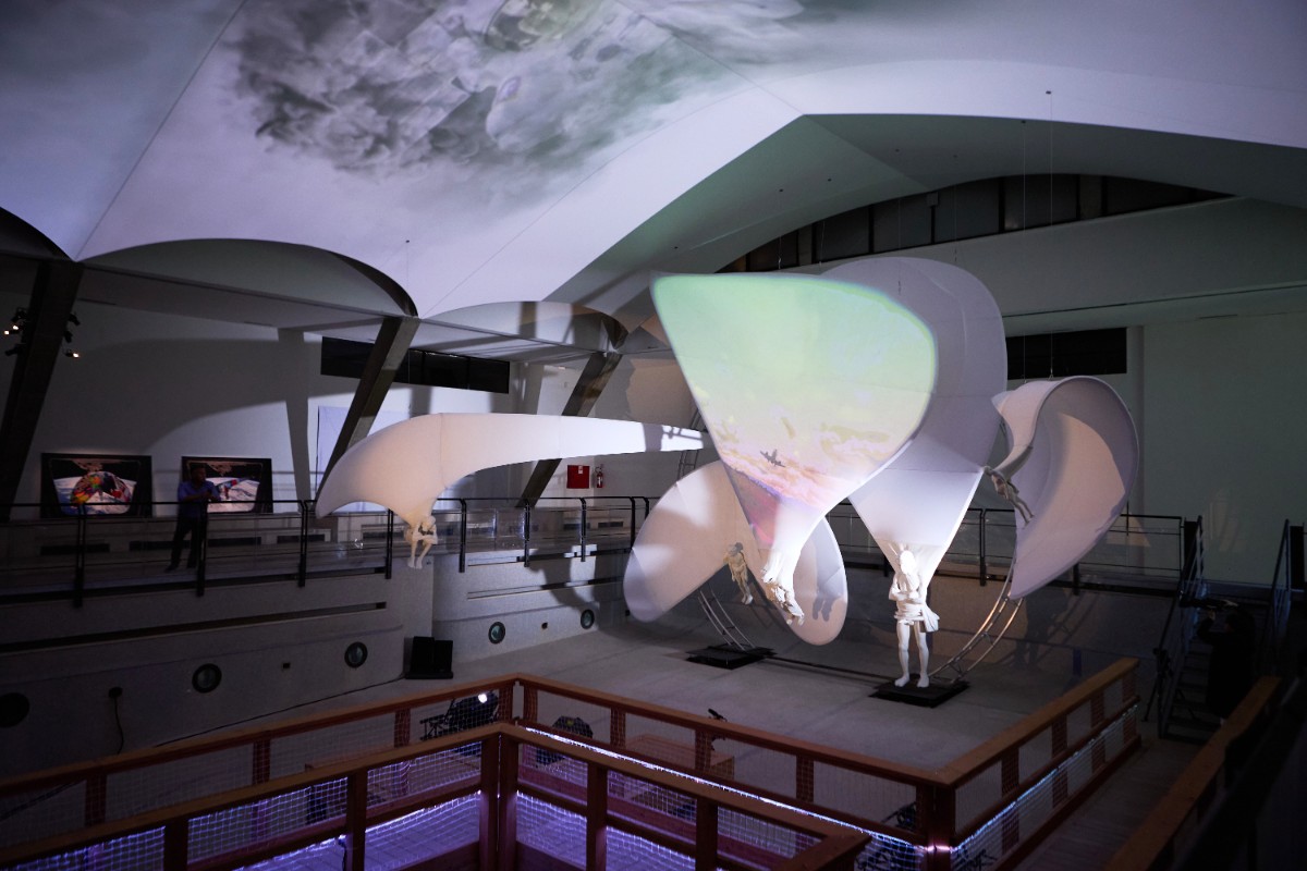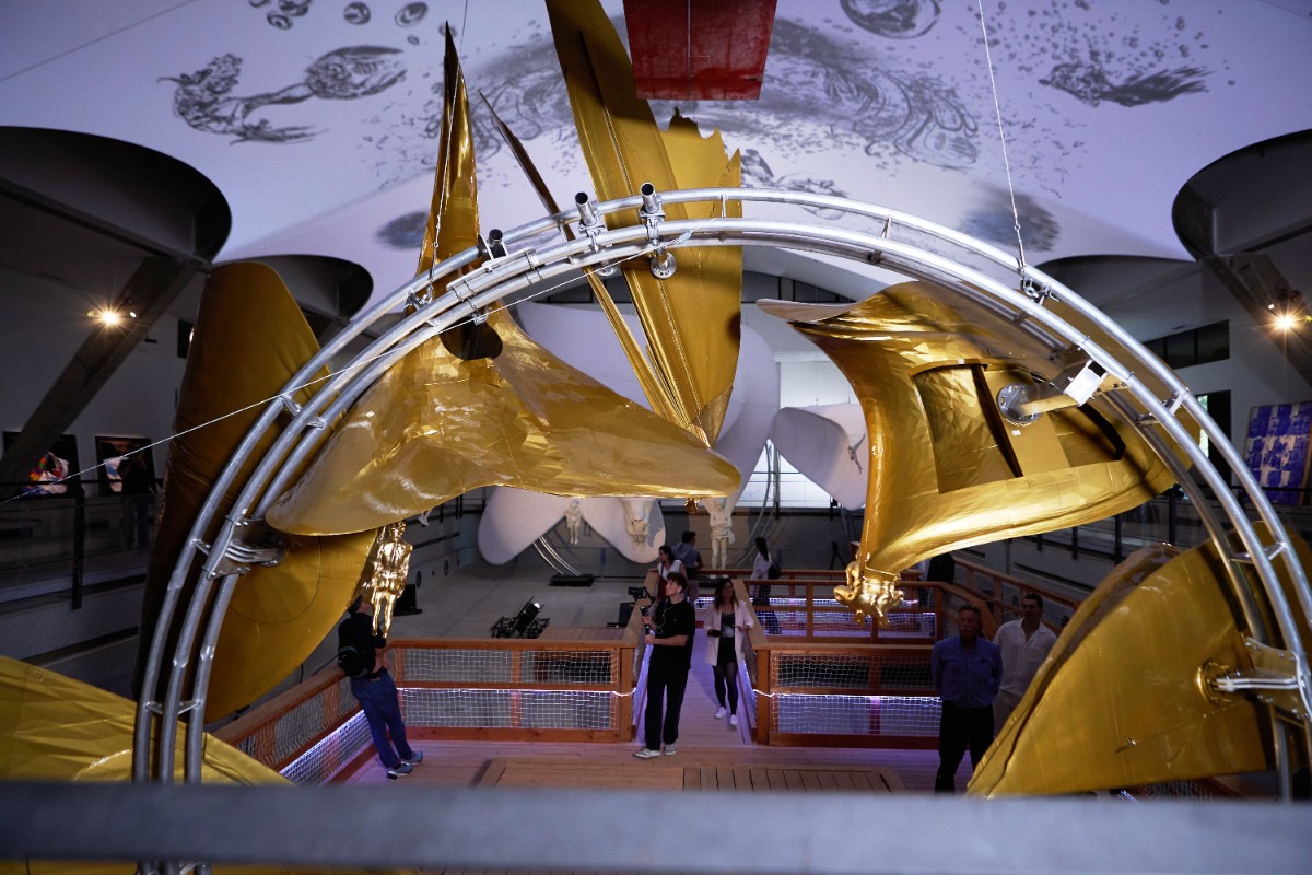 Bývalý bazén Gandini na ostrově San Giorgio Maggiore se proměnil v multimediální prostor. Animovaná filmová Nebesa s názvem Jak se dotknout Nebe popisují vnitřní svět Papuánců tak, jak jej sami vyprávěli; živé filmové záběry jsou svědectvím o událostech, které se skutečně odehrály v džungli i ve vesmíru. Filmová Nebesa, promítaná na strop jako freska, obsahují dva vesmírné telefonáty z let 2013 a 2022, kdy se astronaut NASA Koichi Wakata spojil z Mezinárodní vesmírné stanice (ISS) s náčelníky papuánského kmene, kteří mají schopnost létat k nebi pomocí kouře. Filmová díla ukazují příběhy obydlené skutečnými lidmi i duchy, kteří se stejně jako jejich předkové a jako astronauti dotkli Nebe. To, co nebylo možné vyfotografovat nebo nafilmovat, bylo nakresleno a zanimováno.