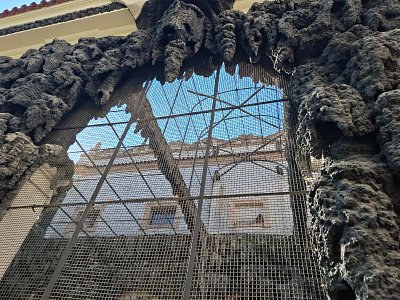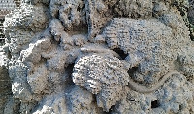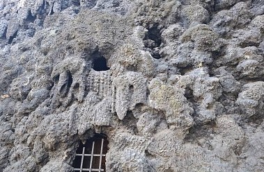 Zde nalezneme různé příšerky, groteskní podoby obličejů, které jsou zde zobrazeny a vykukují z různých zákoutí či z tajných chodeb, které jsou pouze naznačeny. Ve spodní části vylézají ze skrýší a z průchodů žáby či hadi. Umělá krápníková jeskyně, ptačí voliéry a vysoké krápníkové stěny jakoby připomínaly dobu císaře, kde ještě doznívá magická Praha Rudolfa II.