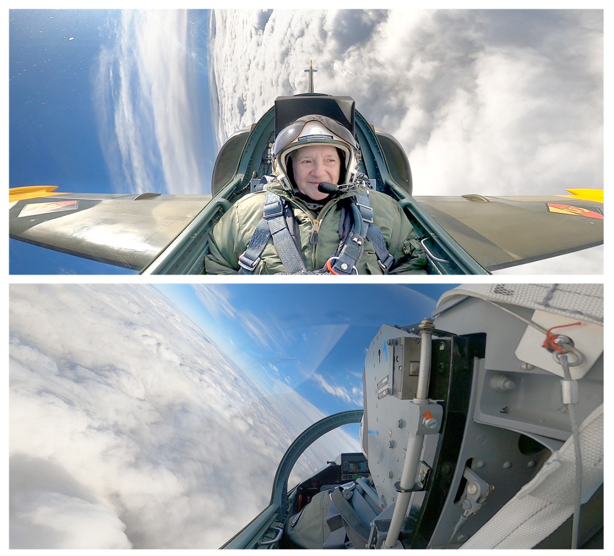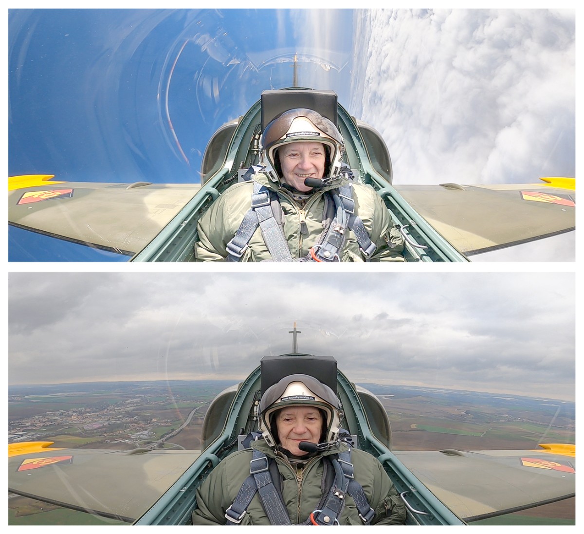 Chvíli jsme letěli po křídle a další je let zpět na letiště