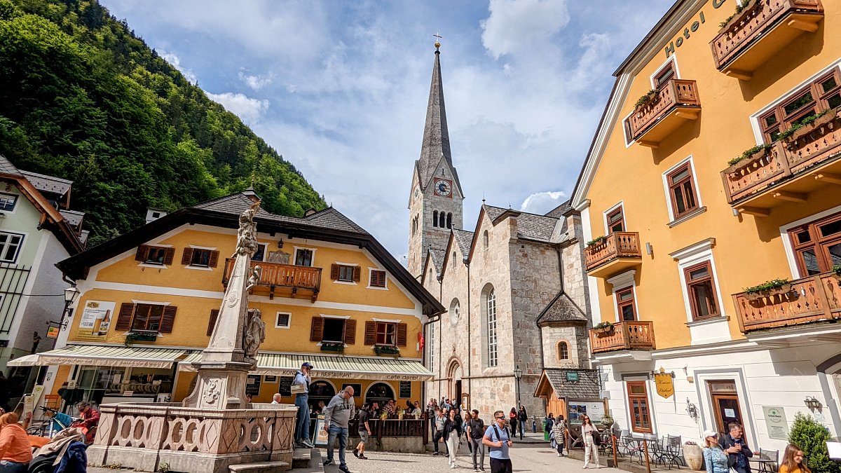 Pohled na část Hallstattu z vyhlídkové plošiny