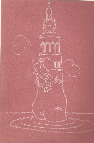 Ilustrační obrázek – vlastní kresba autora (inspirována dobovým tiskem o neexistenci čistírny odpadních vod)