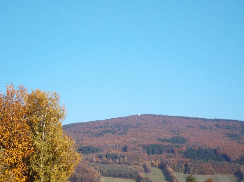 Před námi Biskupská kupa a na snímku vpravo od ní Větrná hora