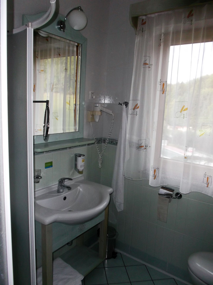 Zvětšovací zrcadlo a fén, kromě dvou ručníků i dvě velké osušky