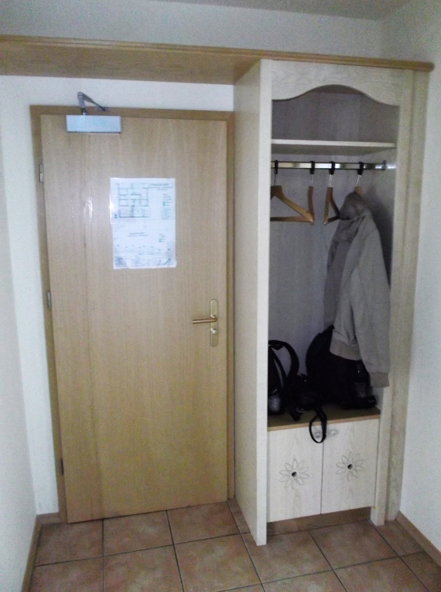 Foceno z prostoru ložnice ke vchodu, vpravo dveře do koupelny