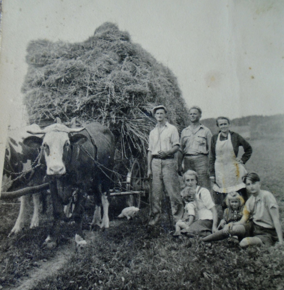 Senoseč - tatínek, strýc, teta , maminka se mnou na klíně, sestra a bratranec