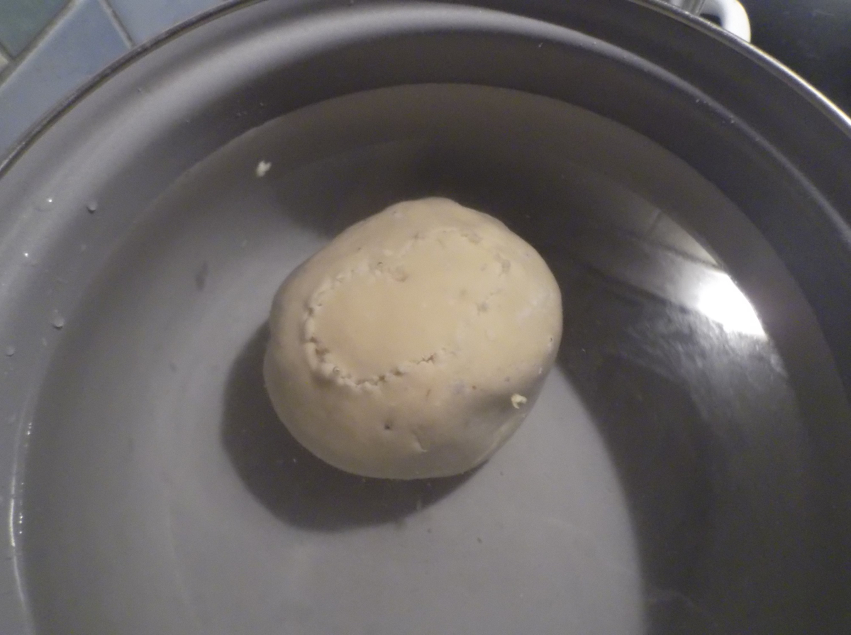 Do studené vody ponoříme těsto na cca 45 min-probíhá kynutí