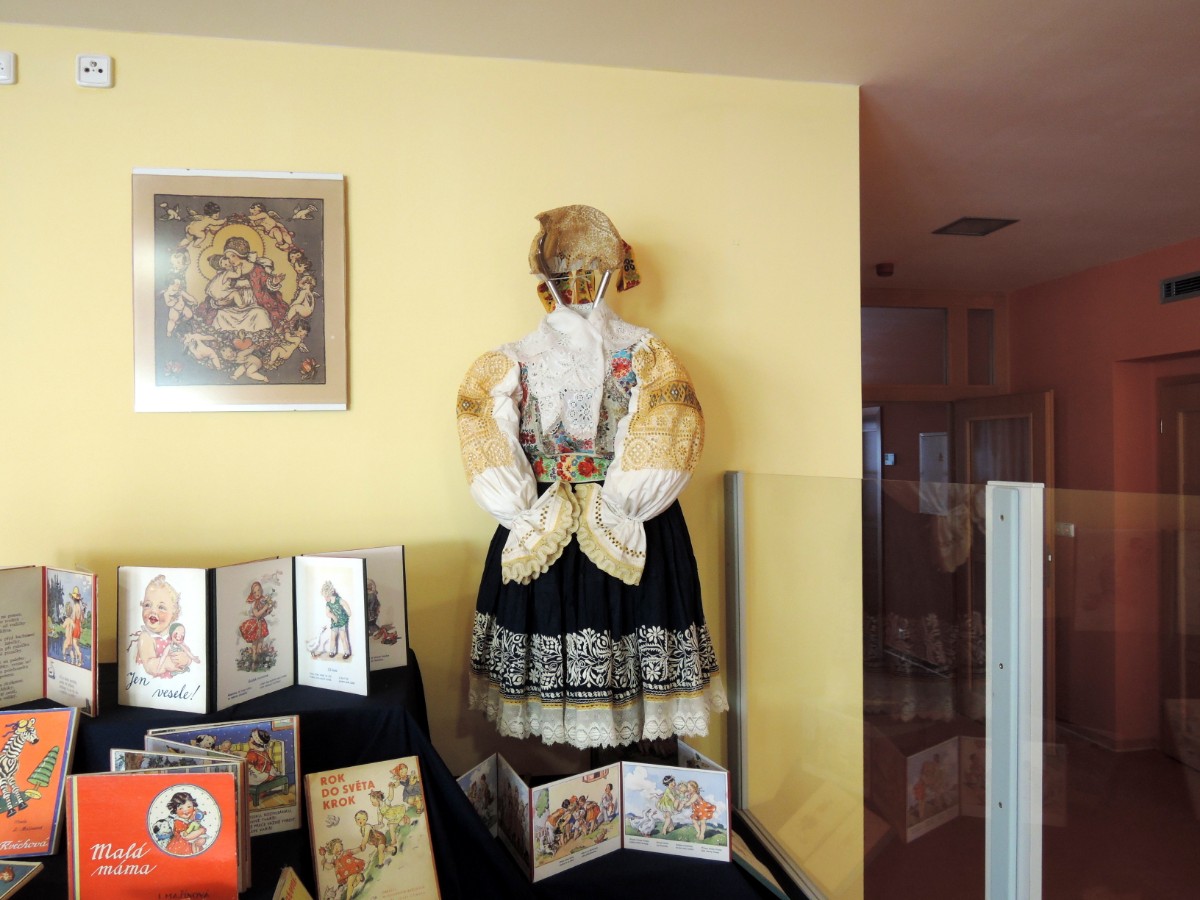 Ve vitríně jsou knihy od Marie Fischerové Kvěchové
