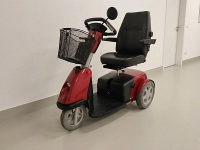 Nabízím zánovní elektrickou tříkolku Trophy 6. Dobré baterie 2x12V 60Ah, motor 900 W, délka 140 cm, šířka 66 cm, rychlost 15 km/h, nosnost 160 kg. Součástí je nabíječka, držák holí, košík a zpětné zrcátko. (Skútr spadá do kategorie certifikovaných zdravotnických prostředků, jízda je povolená po chodnících, v nákupních centrech, nemocnicích. Řidičský průkaz není potřeba). Záruka 12 měsíců, pozáruční servis, možnost doručení, tel. 739 611 249