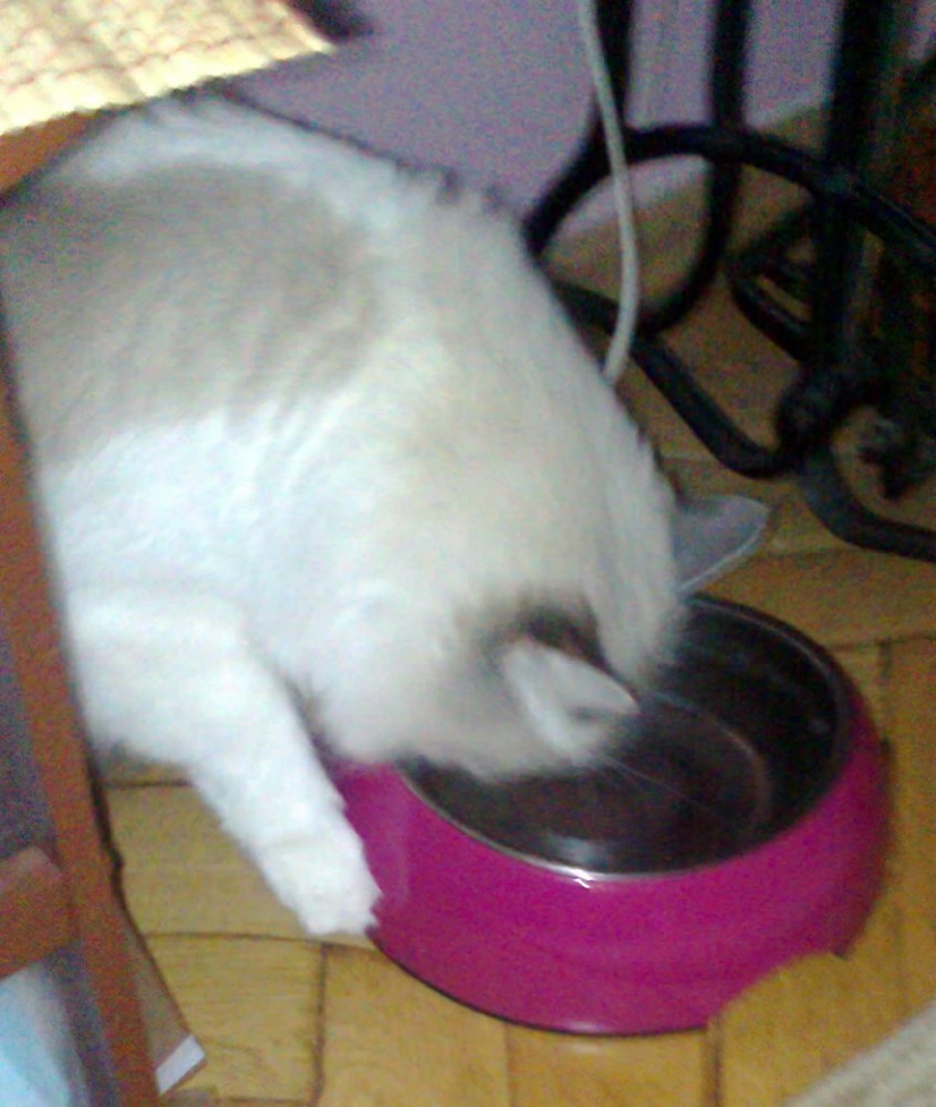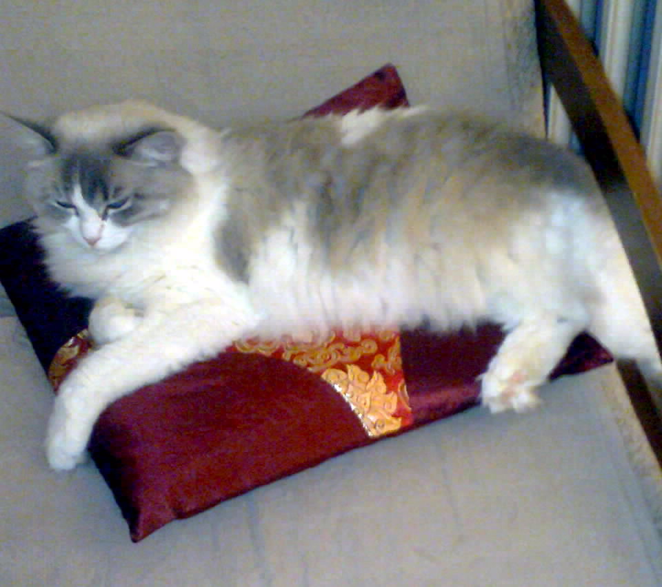 Po jídle dlouze pečuje o svůj zevnějšek, a když je se svým vzhledem spokojená, jde mezi své lidi, nechá se obdivovat a náležitě pomazlit. Pak projeví zájem o hry, nejlepší je honba za malým míčkem (ale musíte jí ho aportovat) nebo za provázkem. To se hezky proběhne a udělá tak zadost své linii. Uondána se schoulí do křesla nebo je tak hodná, že mi křeslo laskavě přenechá a odejde do svého proutěného, náležitě vystlaného, apartmá, kde spokojeně usne.
