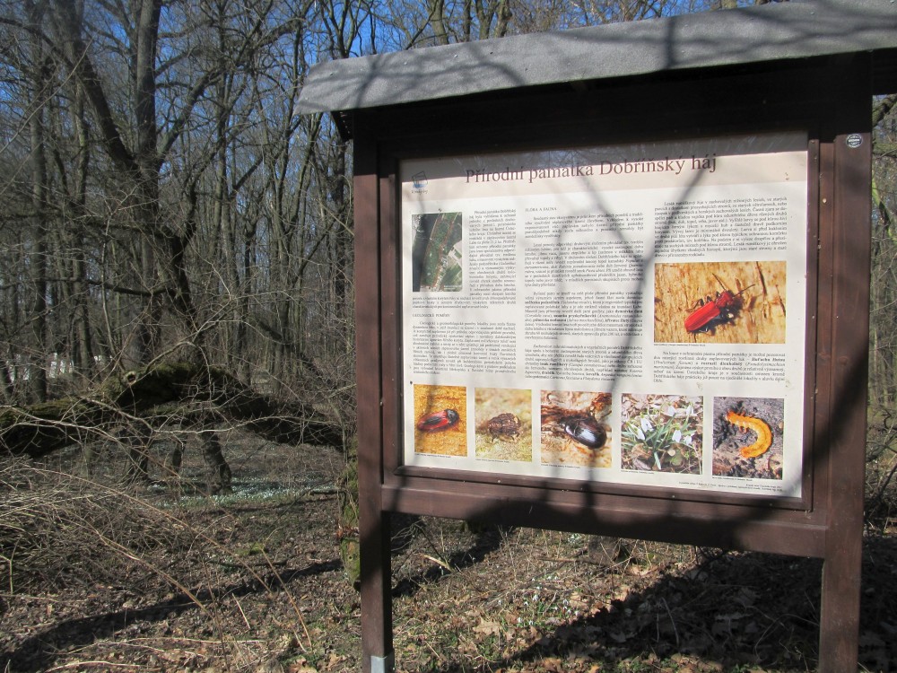 Koncem roku 2010 byl Dobříňský háj, rozkládající se na ploše 21,2 ha, dokonce vyhlášen Přírodní památkou na ochranu lesní vegetace. Součástí lužního háje je i zbytek starého stromořadí většinou dubu letního. Největší z památných stromů prý má obvod kmene 495 cm, jeho nalezení jsem si však musela nechat na příště. Ráda se tam podívám znovu.