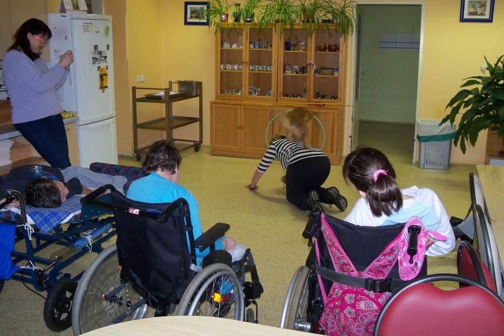 Tentokrát se jednalo převážně o lidičky s těžším postižením, kteří byli téměř všichni na invalidním vozíku. Také jejich vnímavost mluveného slova byla oproti těm předešlým (viz článek Rozdávali jsme štěstí) daleko a daleko problematičtějši. Musela jsem proto rychle ve svém programu zaimprovizovat a přizpůsobit jej jak časově, tak i slovní doprovod pro ně omezit na minimum. O to více jsme byli - nejen já, ale i pracovníci ústavu - překvapeni, s jakým soustředěním tito lidé pozorovali celé vystoupení.