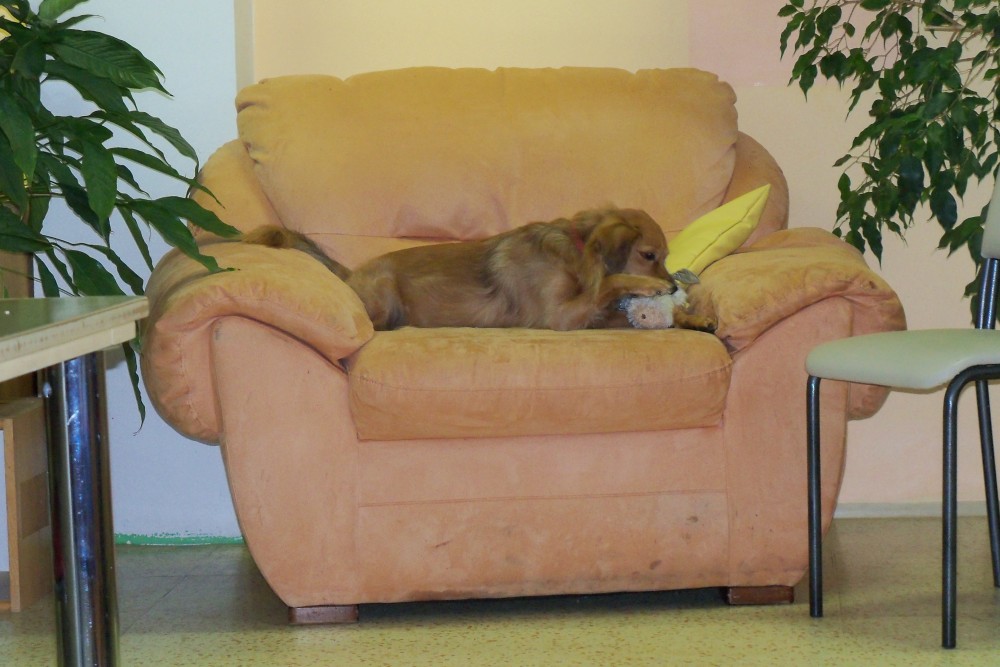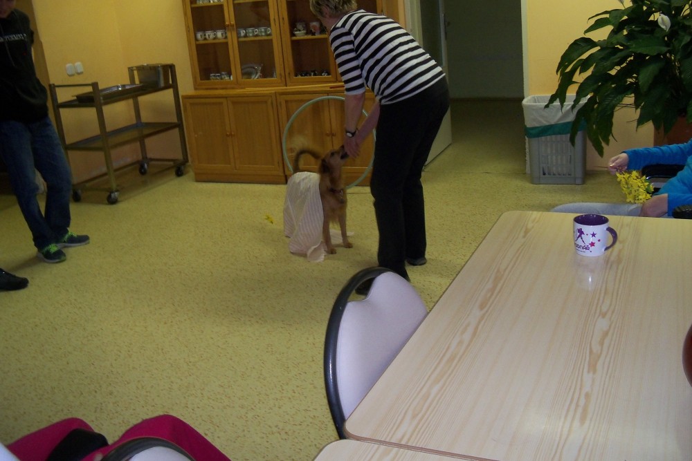 Dnešní návštěva znamenala pro ni po dlouhých letech opět setkání s živým pejskem. Její otázky a nadšení nebraly konce. Musela jsem jí doprovodit na její pokoj, kde má vystavenou galerii pohárů a fotek svých psů. Ještě překvapivější pro obě bylo, když jsme dokázaly zavzpomínat na mnohé společné známé z kynologického sportu, neboť i já jsem měla chovnou stanici tohoto plemene (když jsem se zeptala mimo jiné, zda znala jednoho nejmenovaného pana rozhodčího, mávla rukou a pravila "to byl ale vůl"). No, co na to říci.