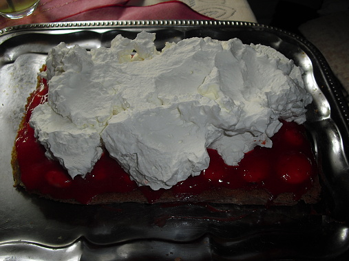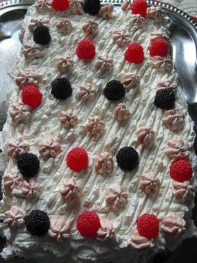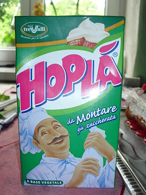 Odlila jeden hrnek zázračné šlehačky Hoplé, která je trvanlivá a nespadne, přidala do ní 3 lžíce mléka a ušlehala tuhou šlehačku, kterou jsem ve vysoké vrstvě navršila na korpus. Dozdobit můžete dle fantazie třeba čerstvými jahodami.