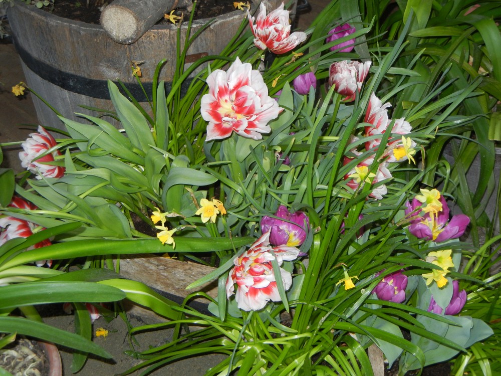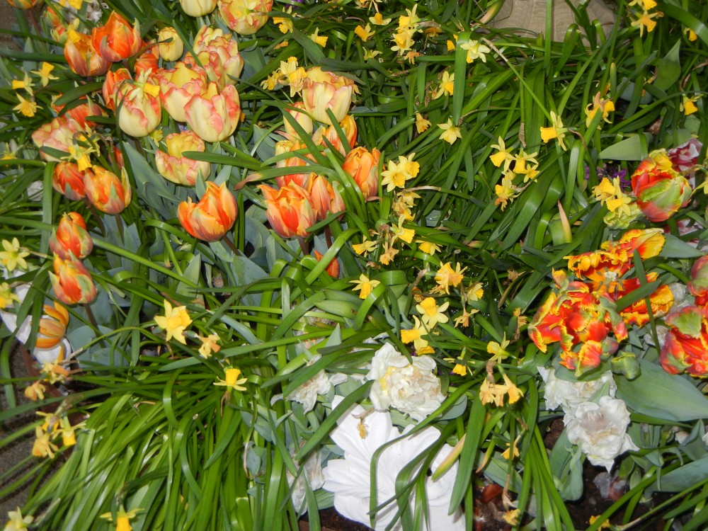 Další pokus o jarní výlet byl učiněn o Velikonocích. Zlákala mě představa záhonů rozkvetlých cibulovin, které slibovala Květná zahrada v Kroměříži. V její "holandské" části , kde jsem naivně očekávala stovky půvabných tulipánových hlaviček, trčela smutně ze země jen napůl rozkvetlá poupata žlutých narcisků. /Ne/Květná zahrada se ještě oddávala prodlouženému zimnímu spánku. Naštěstí v palmovém skleníku se tulipánům přece jen podařilo vytvořit jarní kulisu, která mi připomínala nádherná květinová zátiší snad holandských malířů.