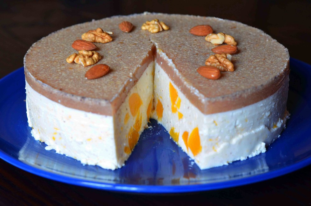 Když se jakž takž rozkoukám, uvidím pouze síťku citronů, načatý meruňkový a broskvový kompot, med, láhev plnotučného kefíru a tři kostky tvarohu, koupené před dvěma dny, protože byly ve slevě. Když je něco ve slevě, nekupte to, že ano... Ale co s třemi kostkami tvarohu? A tu můj anděl kuchtění Culina zaklepal na mou kebuli a řekl: Vraž tam tři tvarohy, dva kompoty, jeden citron, med, kefír, skořici a želatinu a udělej si tvarohový dort za studena. A tak se stalo, vše dobře dopadlo a bylo to skvělé, a já zde prozradím recept.