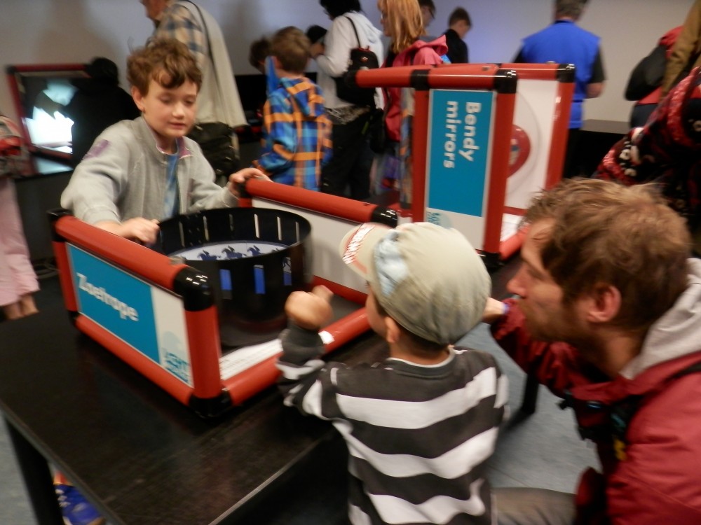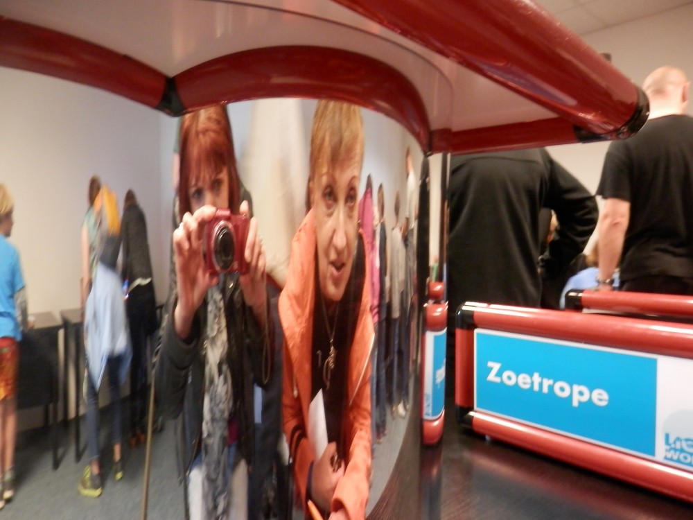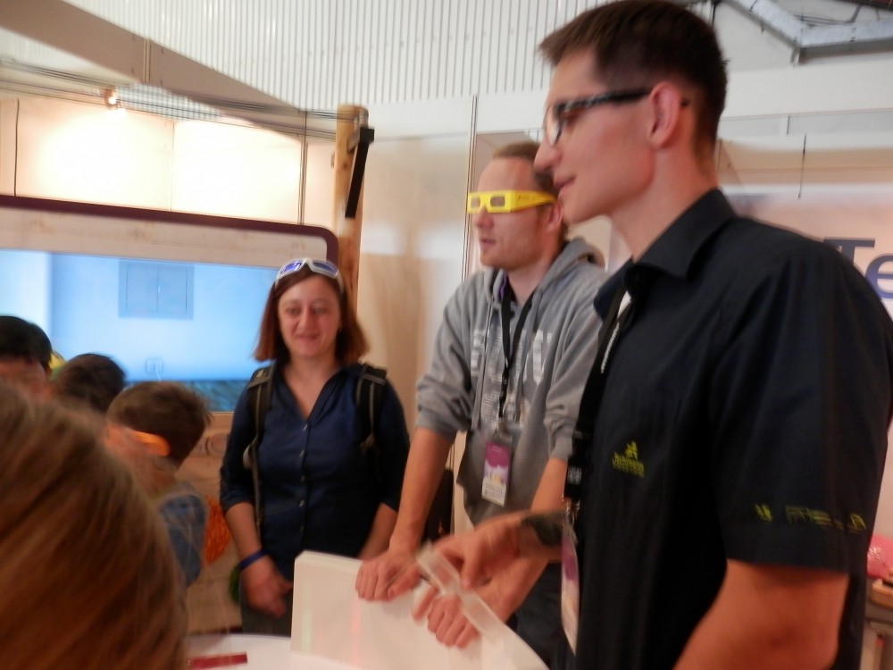 V malém sále budila velkou pozornost interaktivní výstava vědeckého centra ve Velké Británii, určená pro školy. Zde si mohli návštěvníci různého věku vyzkoušet na modelech různé příklady práce se světlem, polaroidy, zrcadly. Ve vedlejším sále se konaly odborné přednášky, avšak my jsme z nedostatku času žádnou z nich nenavštívily.