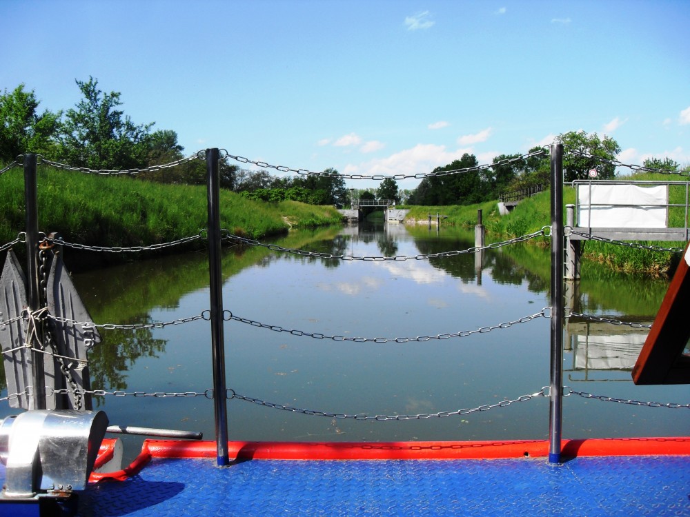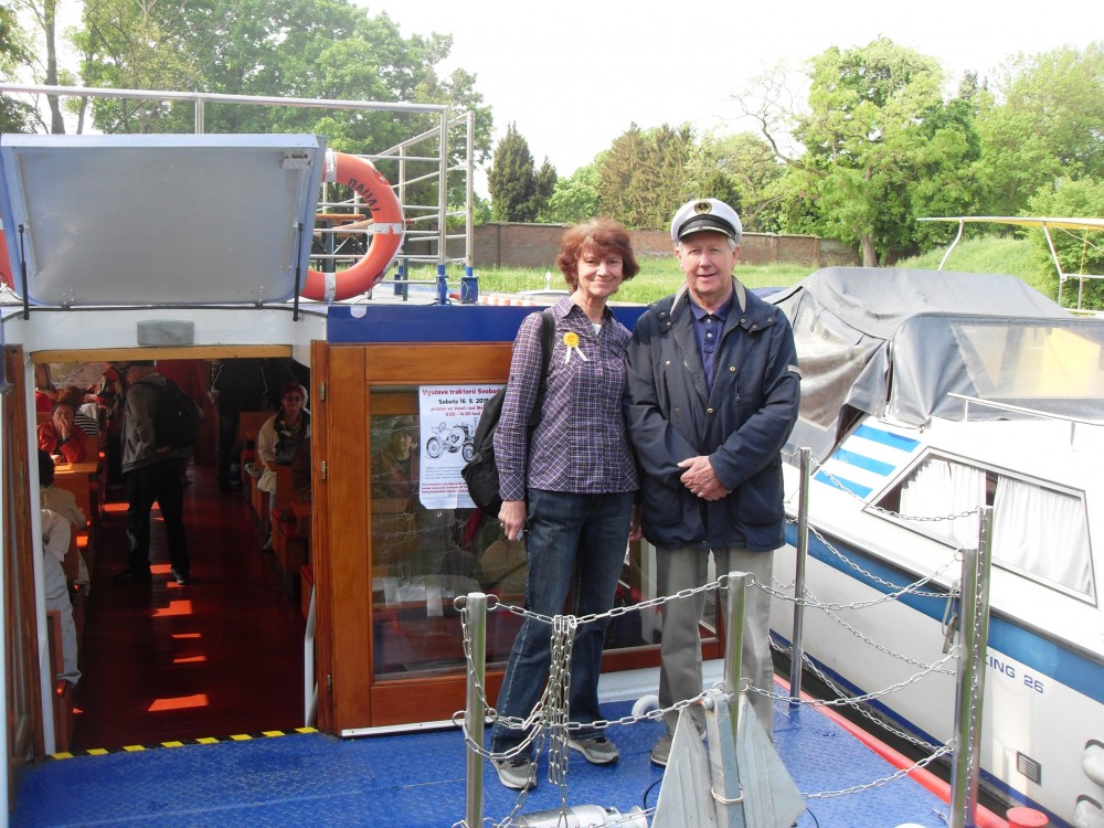 Budeme se plavit na výletní lodi DANAJ. Ta je ocelová a plně krytá. Její rozměry jsou: 4,2 m šířka x 15 m délka. Horní paluba je otevřená. Posádku Danaje tvoří kapitán, lodník a průvodce. Před odjezdem se fotím s kapitánem, abych měla památku na krásnou plavbu. Ta trvá skoro dvě hodiny. Počasí nám maximálně přeje. Svlékáme bundy, svetry, dokonce se stačíme i opalovat. Ti, co jsou trošku zvědavější či aktivnější, sedí na horní palubě a s obrovským nadšením pozorují přírodu, plavbu a zajímavosti kolem kanálu.