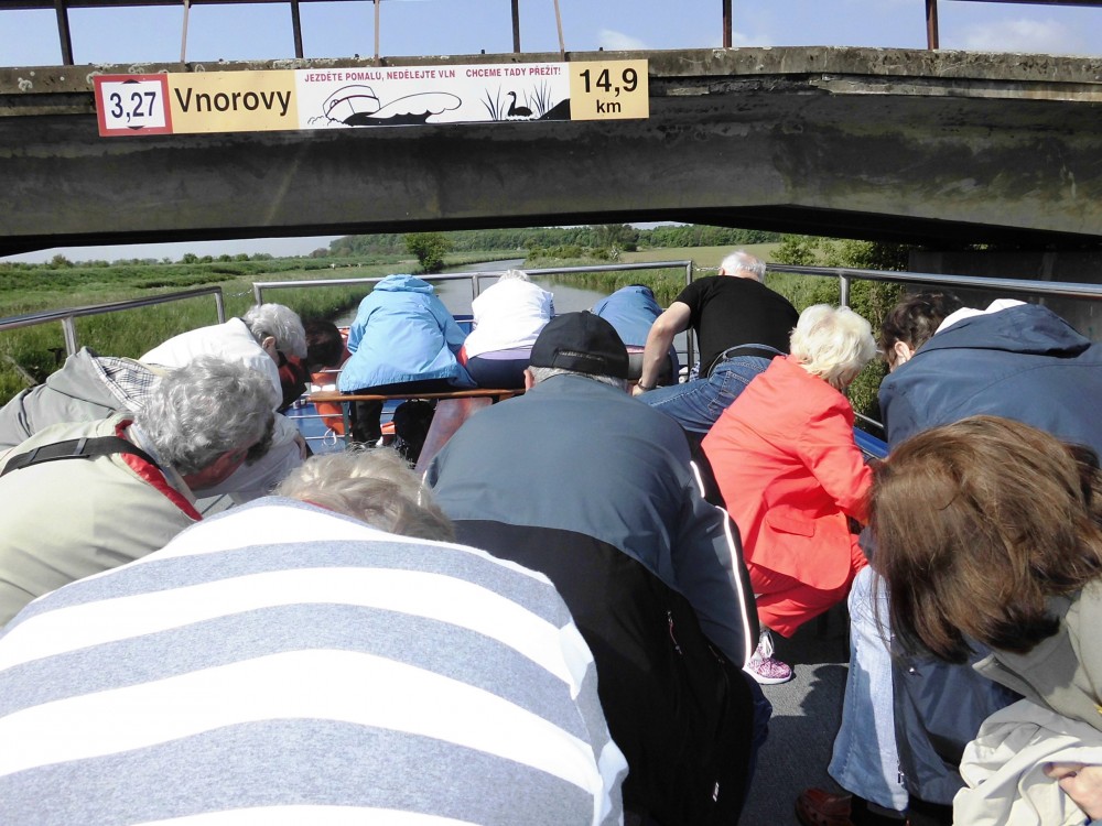Pokaždé, když se blížíme k mostu, přichází lodník a upozorňuje nás, abychom se řádně sehnuli, abychom si dali hlavy až na kolena, nebo - ještě lépe - až na zem. U prvního mostu nám jeho příkaz připadá velice směšný. Vždyť most je vysoký, co by se mohlo stát? Nechápeme. Ovšem, čím více se k mostu blížíme, tím je nám vše jasnější. Mosty jsou opravdu velice nízké! Nebo možná loď vysoká. Kdo ví….A jak zdůrazňuje lodník - srážka s mostem je horší než srážka s blbcem. Hodně bolí! A co je horší, s uraženou hlavou se špatně žije. Uznáváme, že má opravdu obrovskou pravdu. Zkušenosti se zkrátka nedají zapřít. Plavba trvá skoro 2 hodiny. Máme možnost si zde zakoupit nejrůznější občerstvení, což mnozí z nás s radostí přijímají. Od průvodkyně se díky rozhlasu dovídáme spoustu zajímavostí.