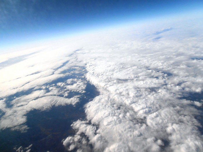 Stoupáme, klesáme, opět stoupáme. Najednou slyšíme hlas z amplionu. Zapínáme bezpečnostní pásy. Proč asi? Zdá se mi, jako bychom vůbec neletěli, ale stáli na jednom místě. Jen mračna pod námi plují a plují. Chvílemi vypadají jako hustá mlha. Když se roztrhne, zjišťuji, že letíme nad mořem. Nad Černým mořem. Na monitoru se na chvilinku objevuje mapka. Pod námi je Sofie, letíme rychlostí 811 km za hodinu, jsme ve výšce 10 688 m. Do cíle nám zbývá 227 km, přistaneme za 38 minut. Momentální teplota venku je -51°C. Mě přes malinké okýnko krásně hřeje sluníčko. Pohledem na Černé moře se dlouho nekocháme. Pod námi opět hustá bílá mračna. Tentokrát vypadají jako obrovské péřové polštáře.