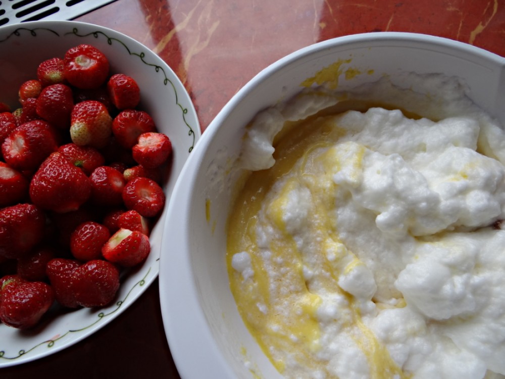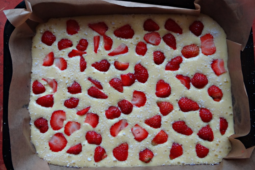 Příprava je jednoduchá. V míse smíchejte všechny sypké ingredience, pak přidejte žloutky rozmíchané v mléce a přilijte olej. Vše důkladně promíchejte. Na závěr vmíchejte tuhý sníh z bílků a znovu lehce promíchejte. Na povrch dejte ovoce, jahody rozkrájené na čtvrtky a podobně. Pod ovoce můžete bublaninu posypat strouhaným kokosem.