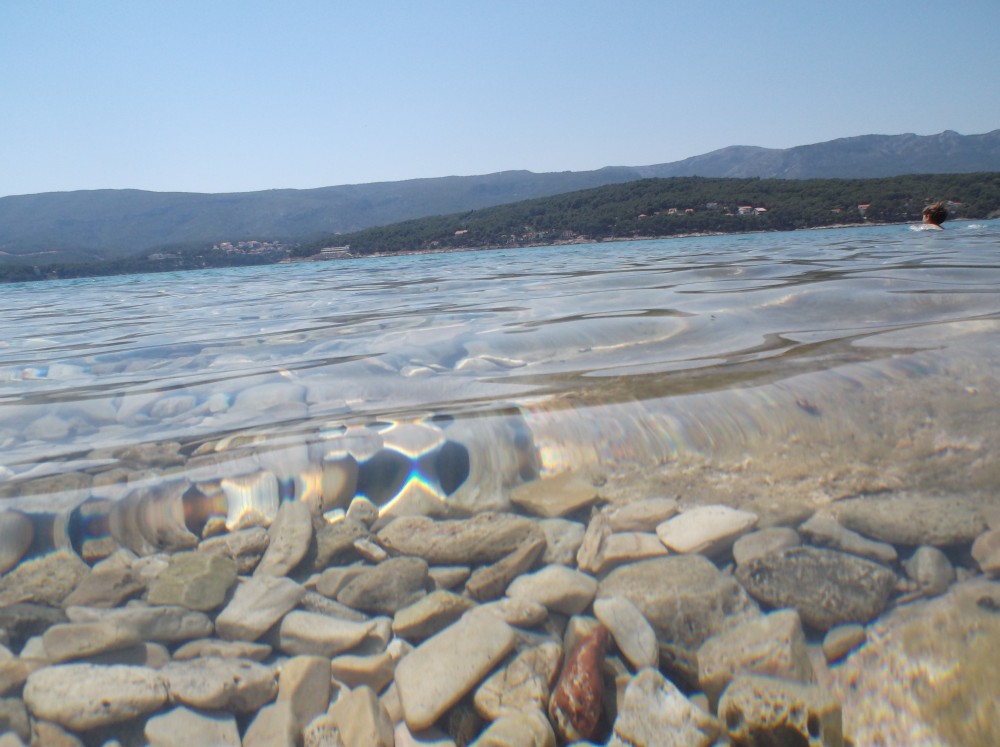 Nejkrásnější zde na ostrově je křišťálové moře. Vstupy jsou pozvolné, ale na straně k Brači jsou vstupy strmé, pro zdatné plavce a i pro skokany. Každý si zde najde svůj „píseček". Skutečný písek zde ale nenajdete. Proto i moře je tak čisté a průzračné. Nezakalí se pískem. Je začátek června a dnes jsem se poprvé v tomto roce koupala. Myslela jsem, že do moře ještě nevlezu. Ale když jsem viděla asi osmdesátiletý mladistvý manželský pár, jak vedle mne bez zaváhání vstupuje do té ledárny, tak jsem se fakt zastyděla. Již jsem se totiž asi půl hodiny systematicky ochlazovala, abych náhodou z té náhlé změny teploty nedostala infarkt. Po tomto, pro mne, dosti šíleném vstupním rituálu již bylo plavání nádherné.