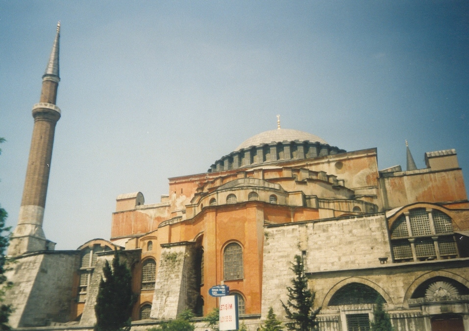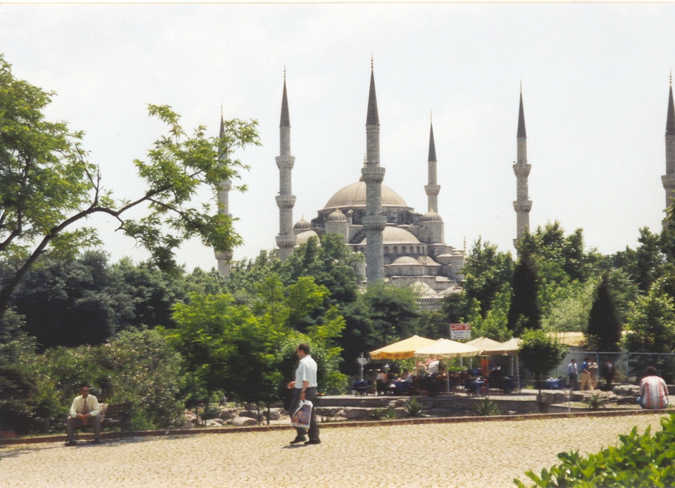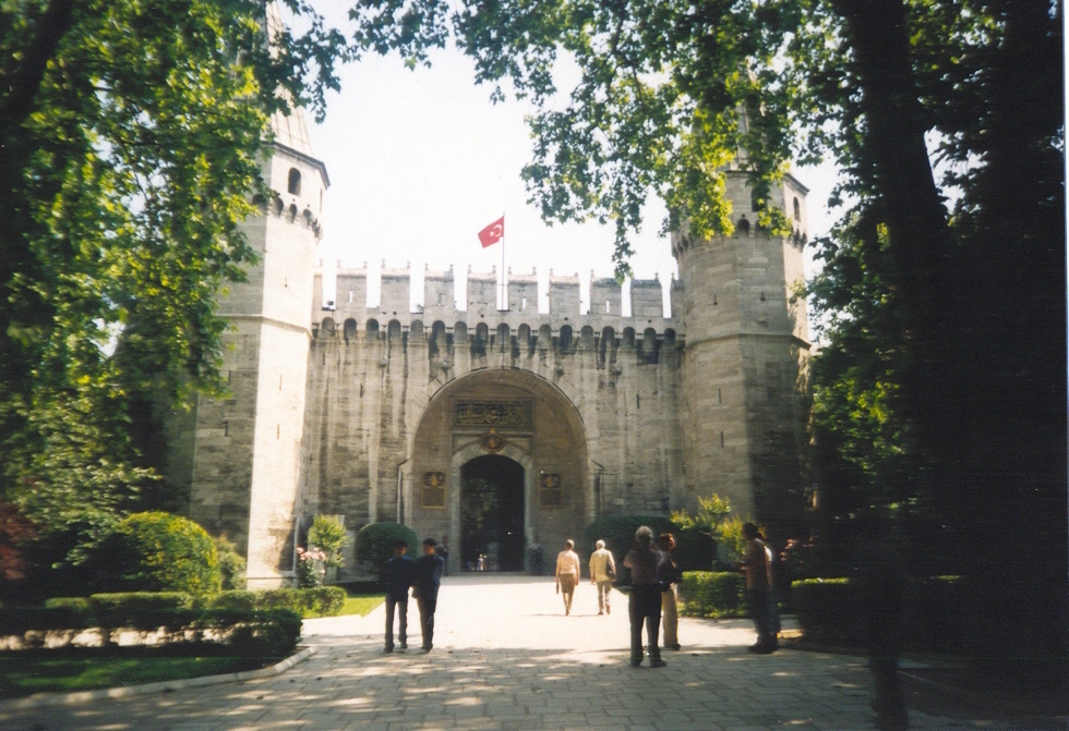 Vyrážíme kolem nádraží do kopečka směr TOPKAPI, což byl palácový komplex, v němž sídlil sultán. Palác je úspěšně nalezen dle našich bídných plánů a my vcházíme branou Eunuchů dovnitř. Vstup je pouhý milion tureckých liber. Už vstupní pohled je nádherný. Zeleň, zeleň a krásné historické stavby. Někde je zakázáno fotit, ale je to výjimečné. Vše je pastva pro oči. Palác či celý komplex je průchozí, a tak po prohlídce můžeme vyjít na opačném konci a není nutné se vracet. Za branou, kterou vycházím, stojí AJA SOFIA. Je to původně křesťanský chrám, který Turci po dobytí upravili jako mešitu. Přistavěli minarety. Když se Turecko ze sultanátu změnilo na republiku, změnila se mešita na muzeum. Obyvatelé se však nezměnili, a tak sice muži chodí po evropsku oblečení, ženy jsou stále polozahaleny. Tvář mají sice odhalenou, ale paže či noha jim není vidět. A ženu vidět v obchodě jako prodavačku se nepovede. Nejsou. Ženy vše řeší kabáty i v tom největším vedru. Chudáci. A fotit? To jen kradmo, aby majitel neviděl. I ženy se kvůli tomu rozčilují.