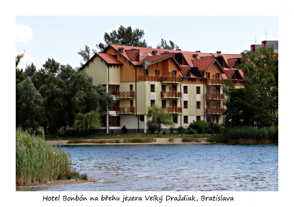 Cesta uběhla rychle i s přestávkou na oběd (musím podotknout, že ten se moc nevydařil – jídlo drahé a ne zrovna dobré). Před druhou hodinou jsme zastavili u 4*hotelu Bonbón na samém okraji Petržalky na břehu přírodního jezera Velký Draždiak. Většina z nás se hned po zabydlení vydala právě okolo tohoto jezera, abychom protáhli nohy po dlouhém sezení. V hotelu je vyhřívaný bazén i s vířivkou, který jsme měli po celou dobu pobytu k dispozici.