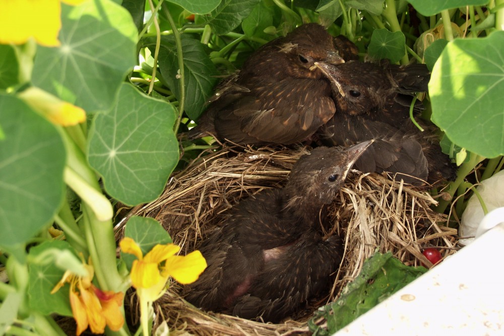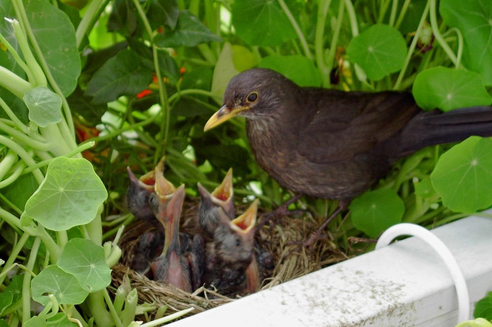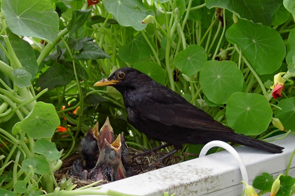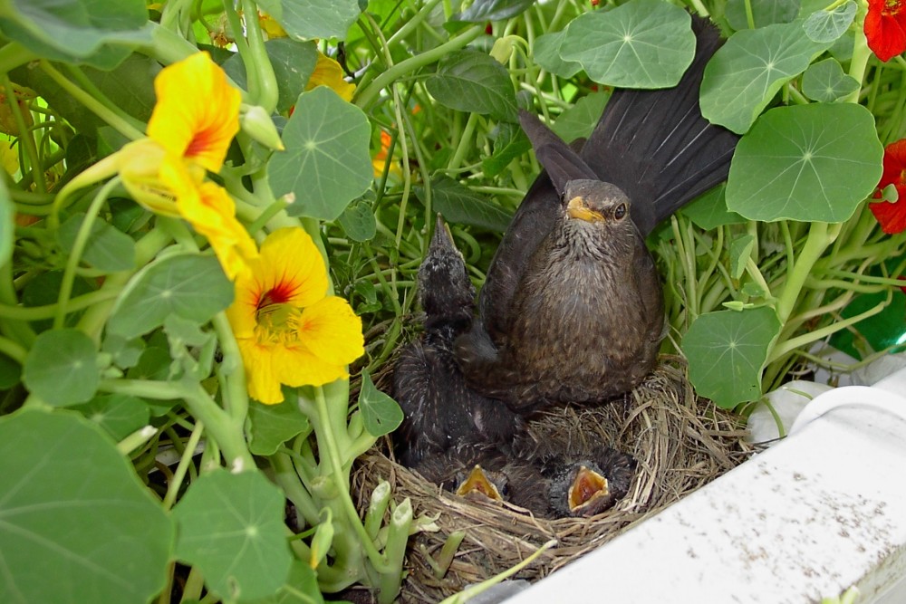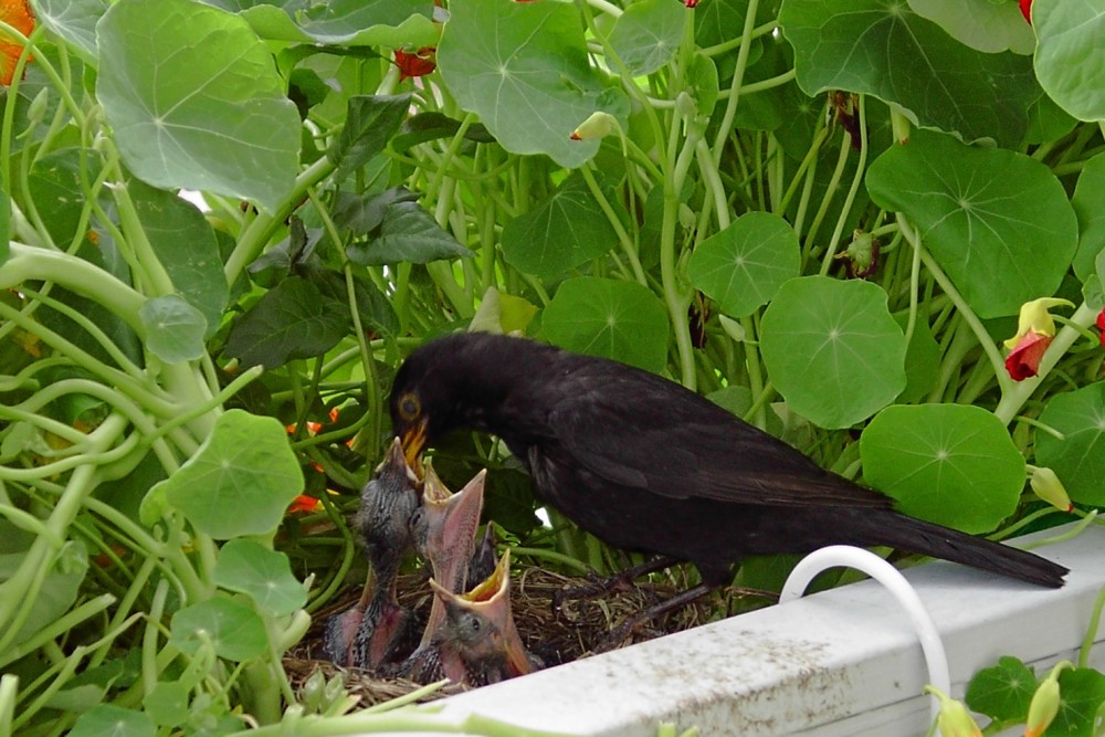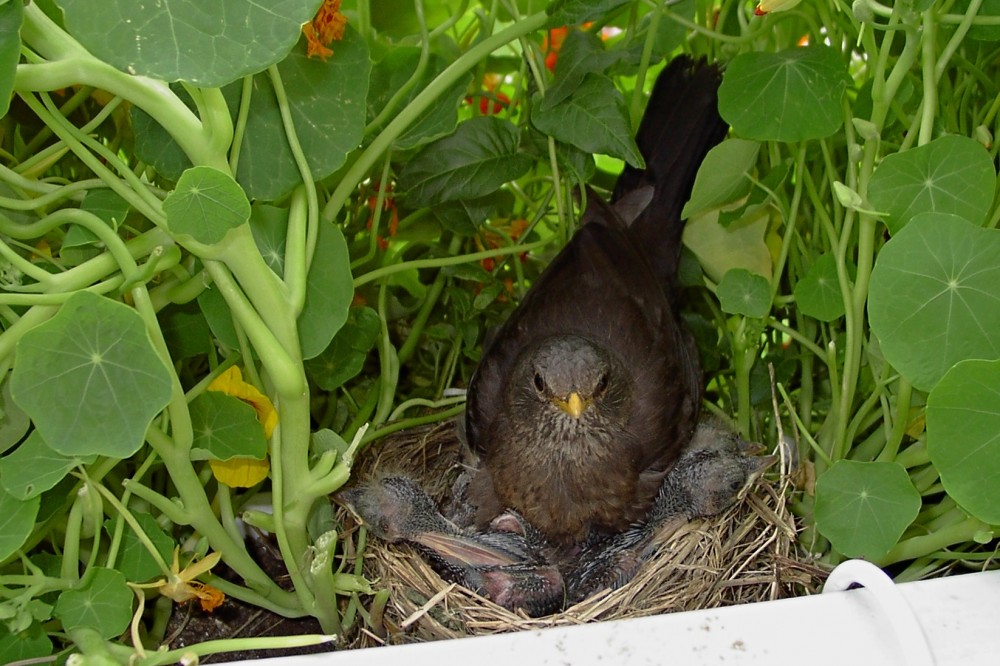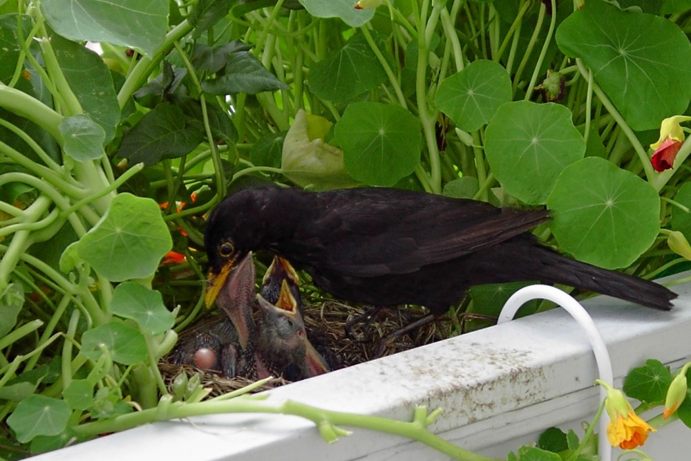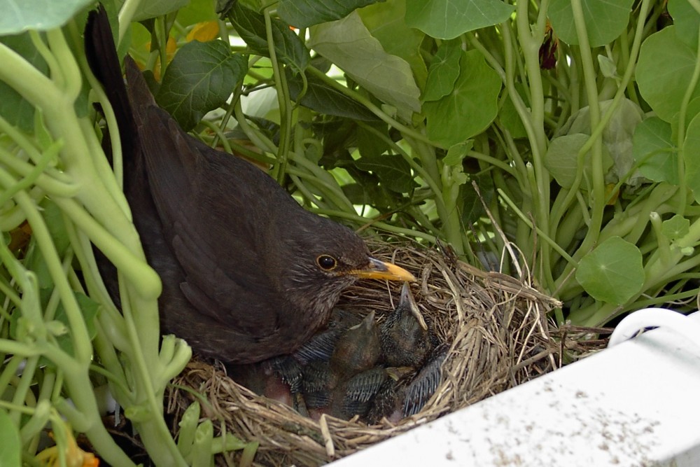 Bylo léto, jak má být. Sluníčko, teplo, řeřicha v truhlíku na balkoně bujně rostla i pěkně kvetla. Všimla jsem si, že se líbí i kosovi – stále se tam vracel. Byla to kosice a začala stavět hnízdo. Musím uznat, že si vybrala dobře. Bezpečné, ve stínu řeřichy také před deštěm trochu chráněné.