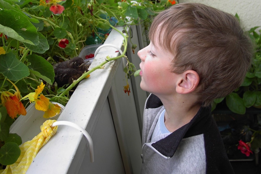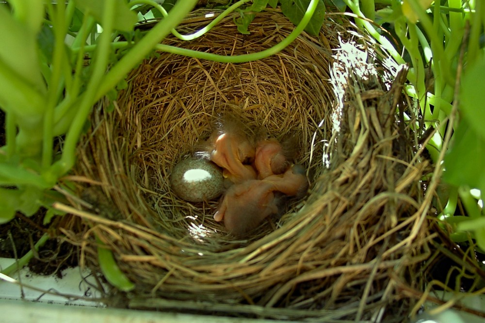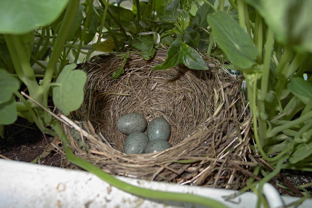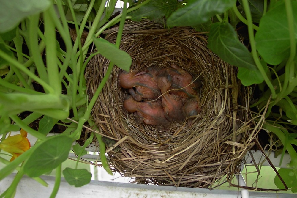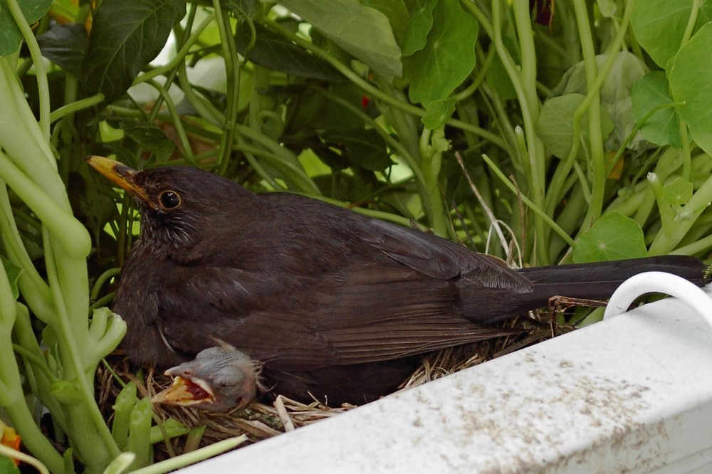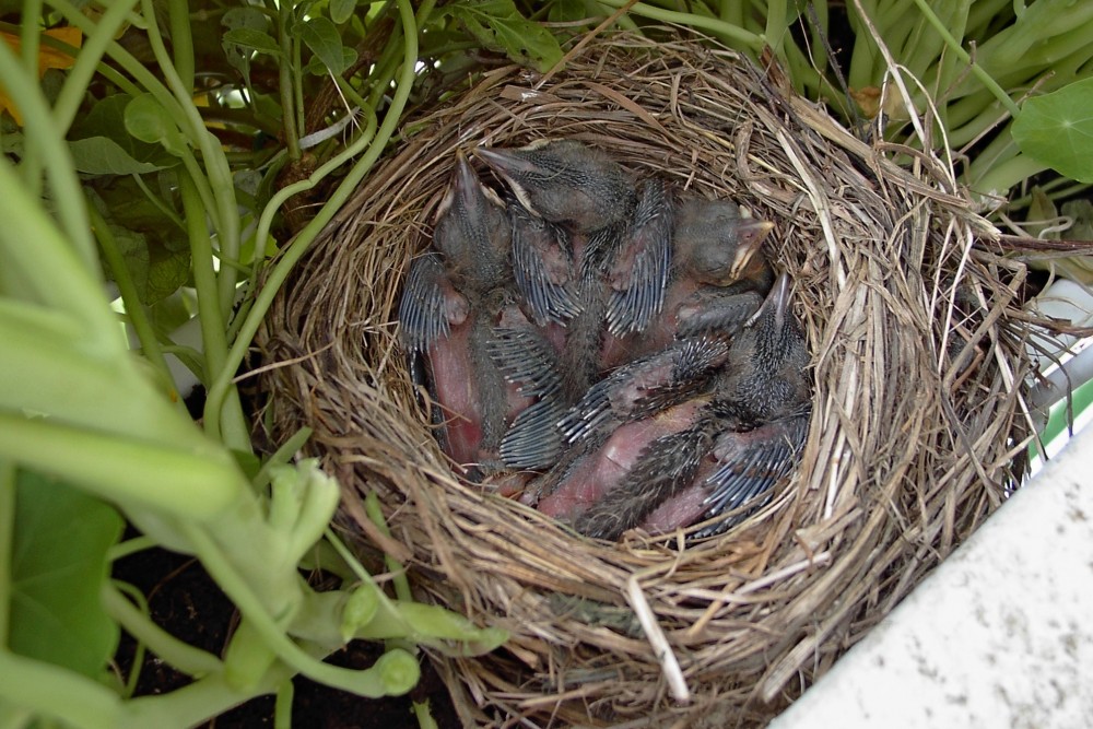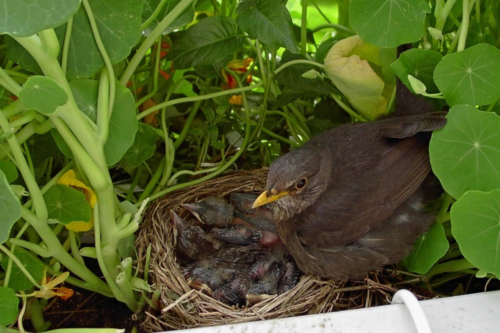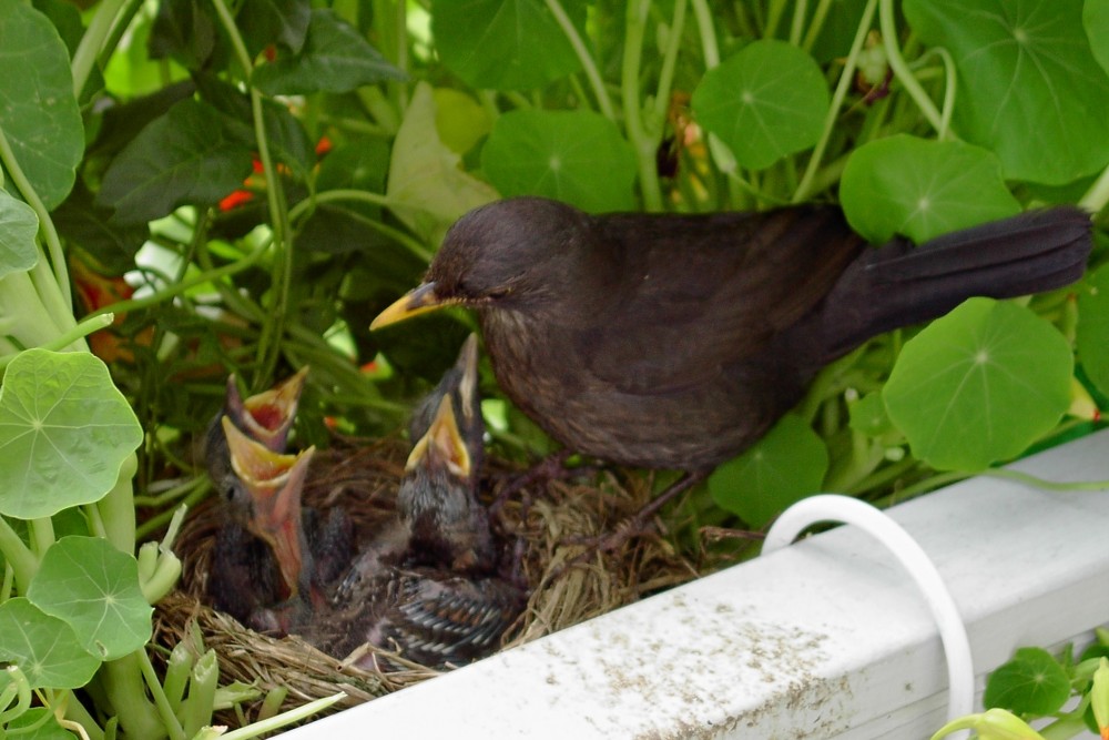 Bylo léto, jak má být. Sluníčko, teplo, řeřicha v truhlíku na balkoně bujně rostla i pěkně kvetla. Všimla jsem si, že se líbí i kosovi – stále se tam vracel. Byla to kosice a začala stavět hnízdo. Musím uznat, že si vybrala dobře. Bezpečné, ve stínu řeřichy také před deštěm trochu chráněné.