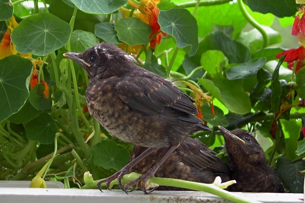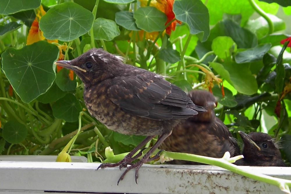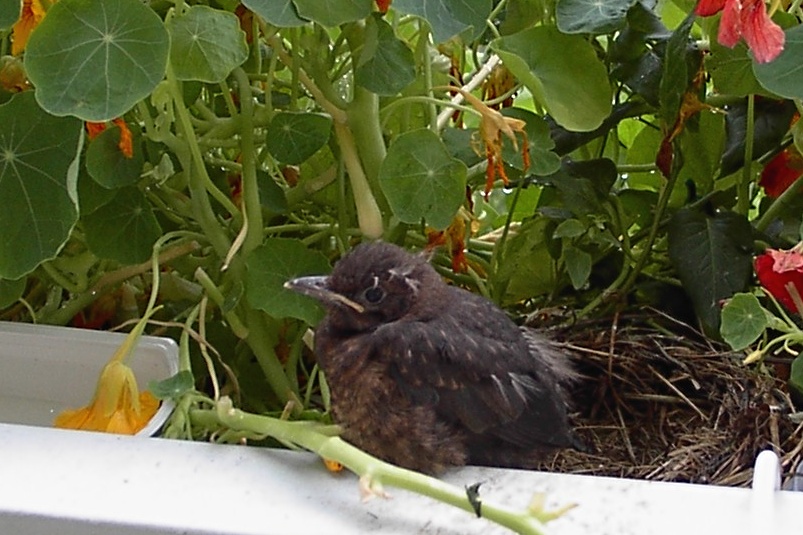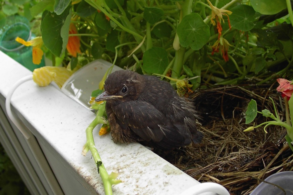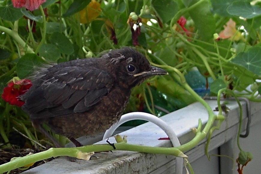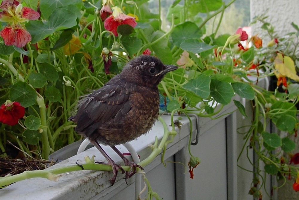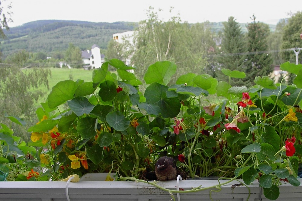 V pátek (31.7.) to bude 10 let, co poslední kosáček vylétl z hnízda. Do hnízda už se kosi nevrátili, a ani v dalších letech na balkoně nezahnízdili. Ale také mi od té doby nerostla řeřicha v truhlíku tak bujně. Že by to bylo tím?