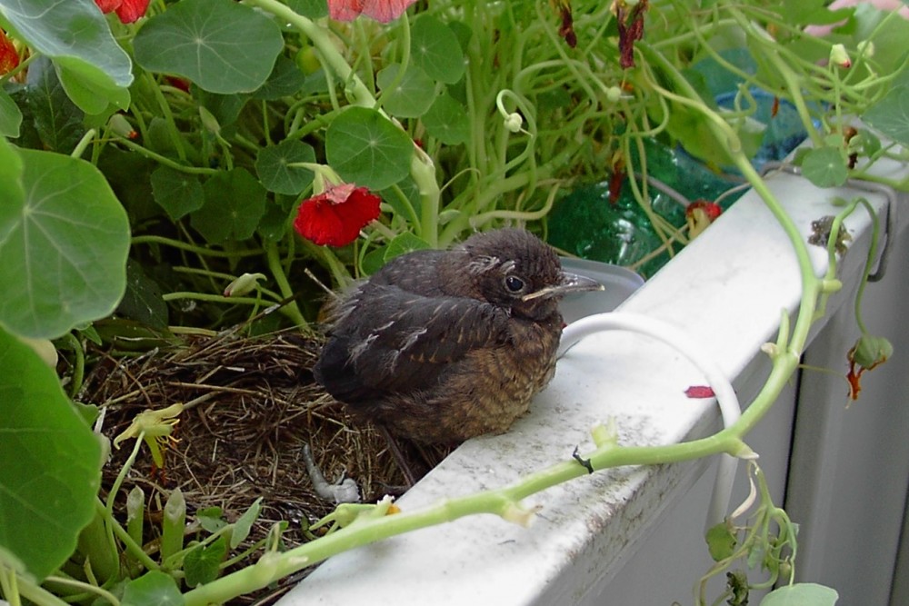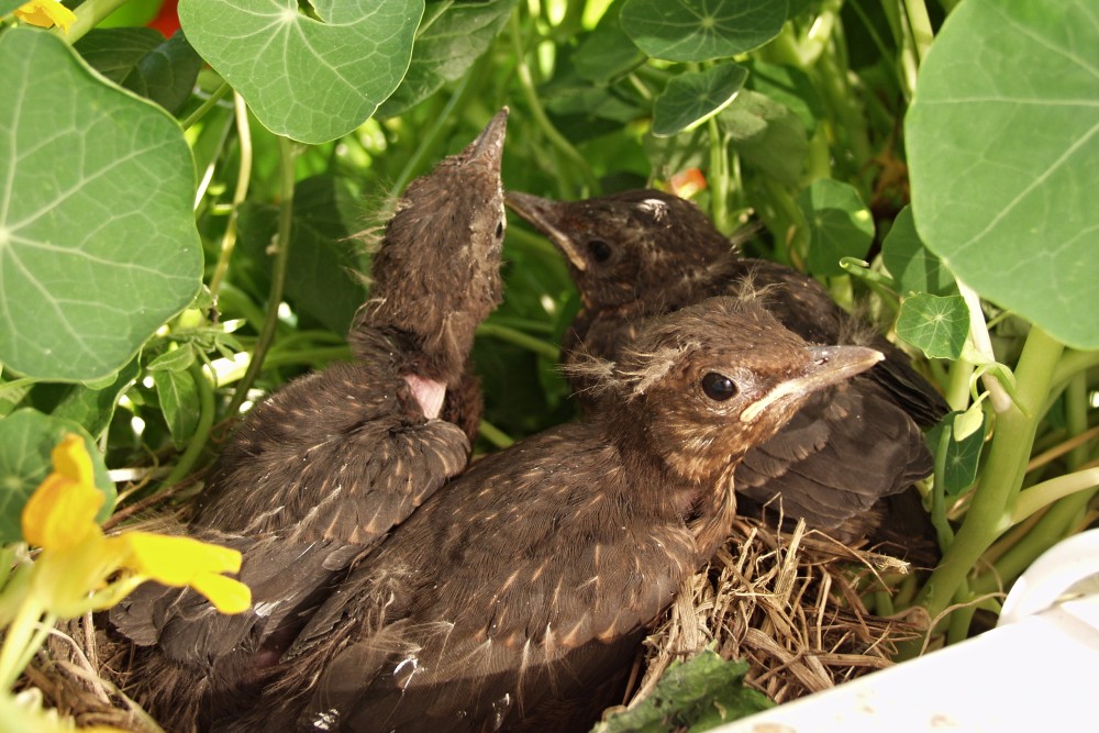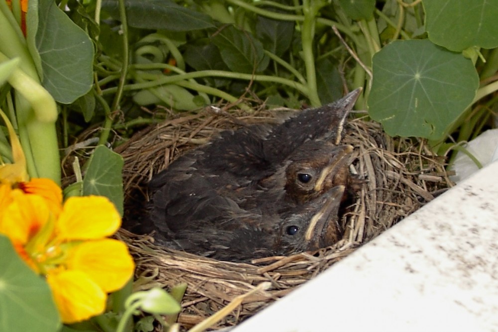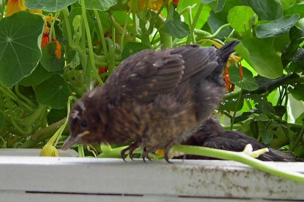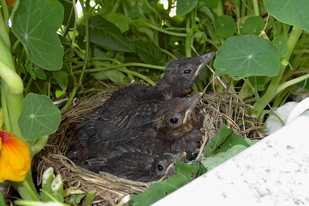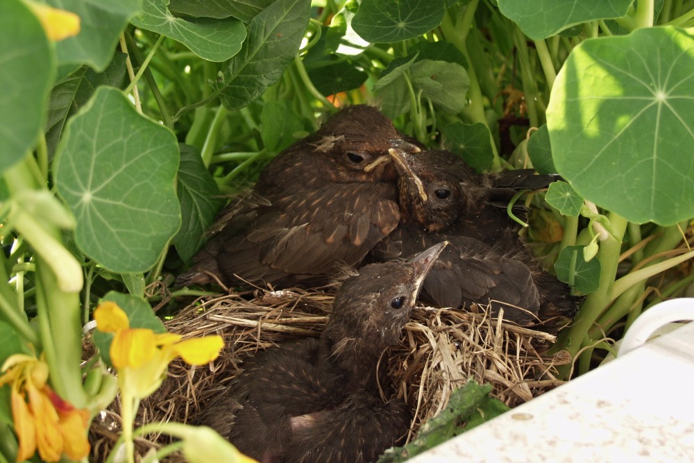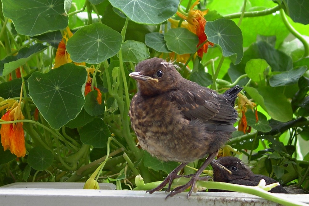 V pátek (31.7.) to bude 10 let, co poslední kosáček vylétl z hnízda. Do hnízda už se kosi nevrátili, a ani v dalších letech na balkoně nezahnízdili. Ale také mi od té doby nerostla řeřicha v truhlíku tak bujně. Že by to bylo tím?