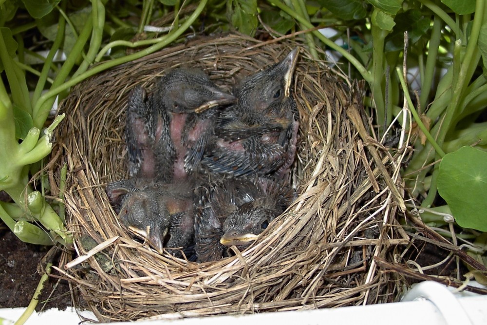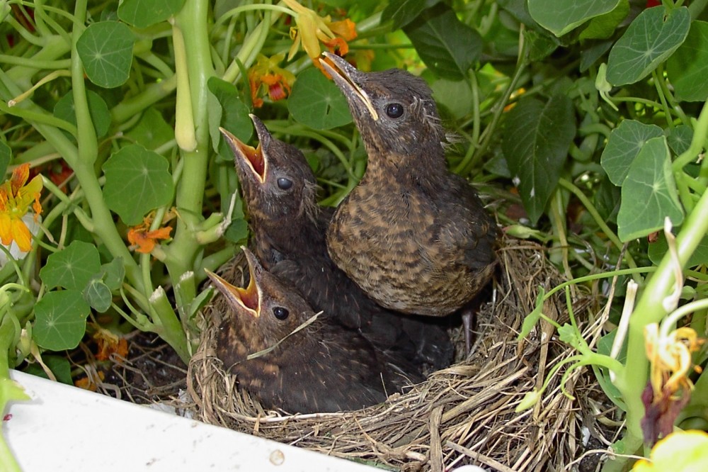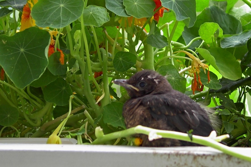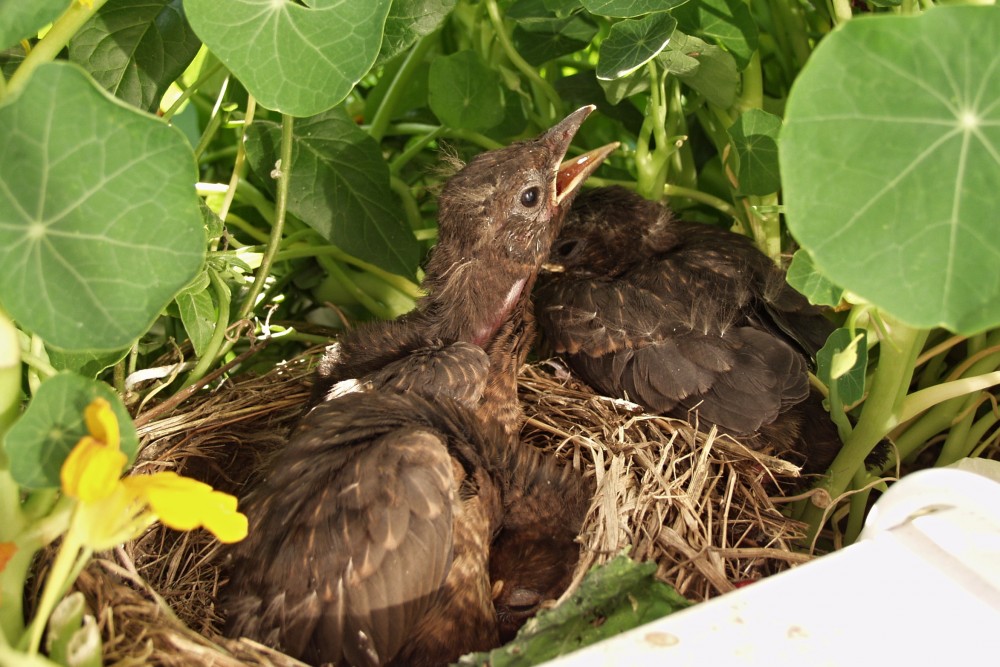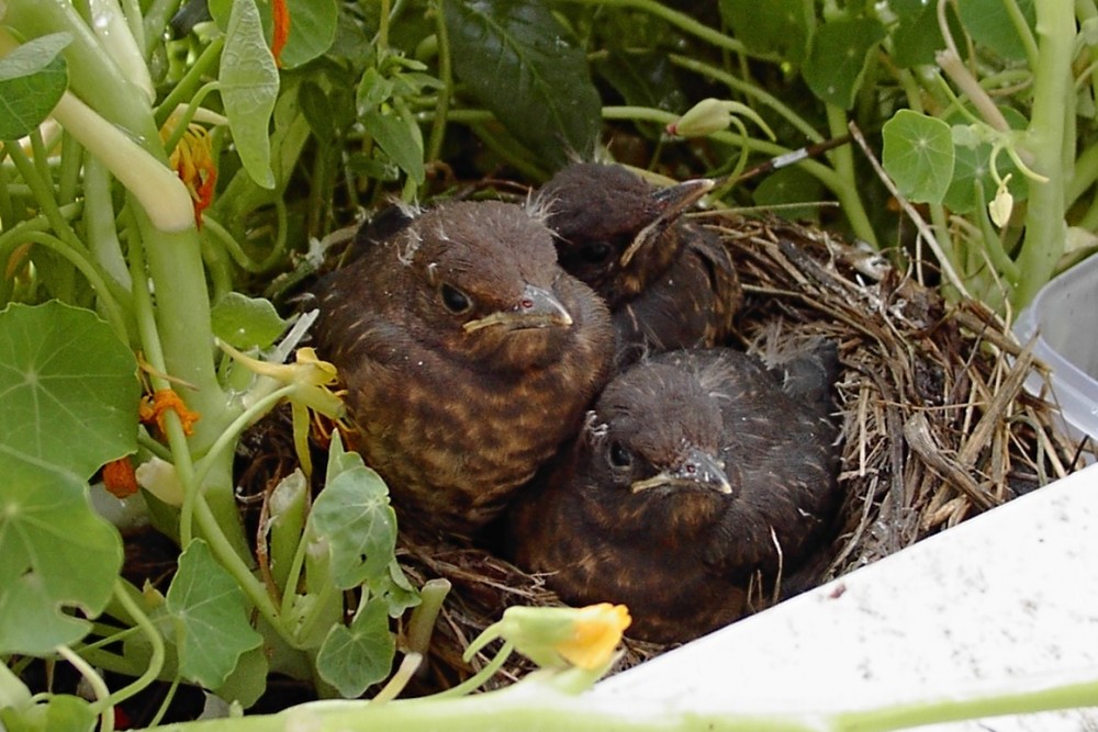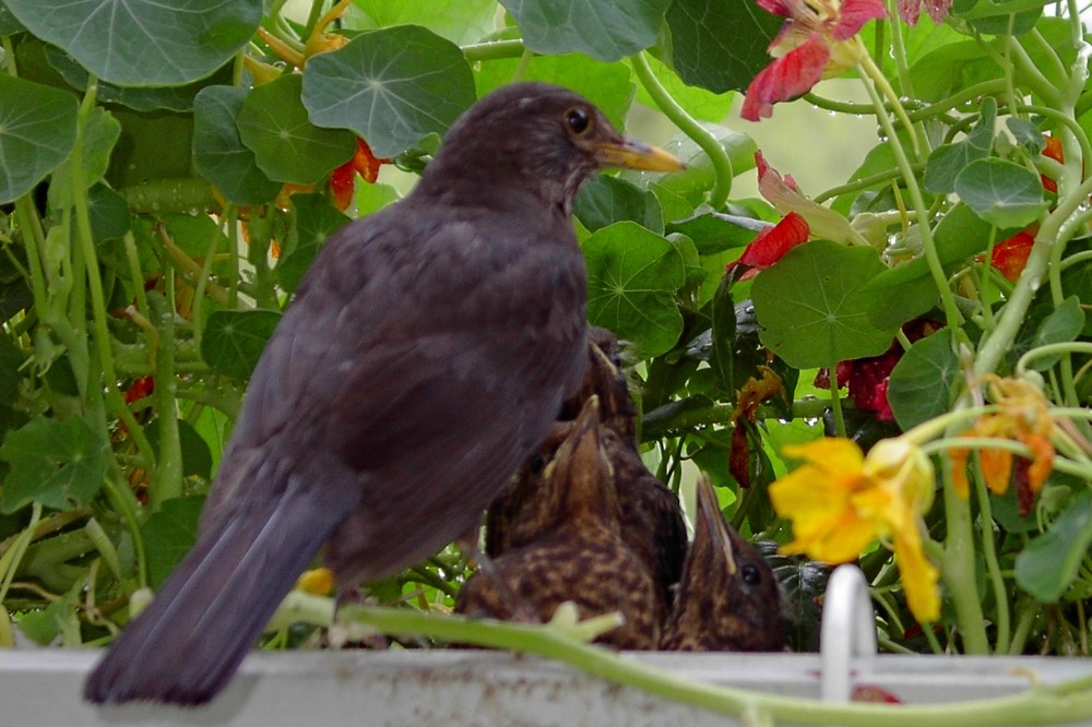 V pátek (31.7.) to bude 10 let, co poslední kosáček vylétl z hnízda. Do hnízda už se kosi nevrátili, a ani v dalších letech na balkoně nezahnízdili. Ale také mi od té doby nerostla řeřicha v truhlíku tak bujně. Že by to bylo tím?