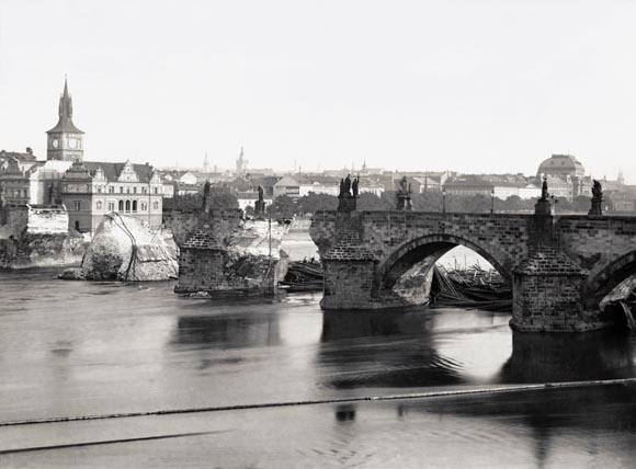 Na fotografii je oprava Karlova mostu po povodni v září roku 1890. Opravu mostu navrhl architekt Hlávka a trvala dva roky. Za pozornost stojí tmavé skvrny na mostě – jsou to osoby a povozy. V té době, kdo nehybně nestál, ten prostě zmizel a „zůstala po něm jenom skvrna“ . V hovorové češtině se to řekne jadrněji.