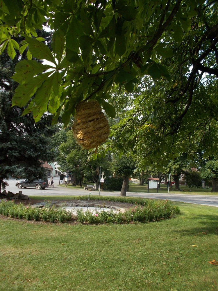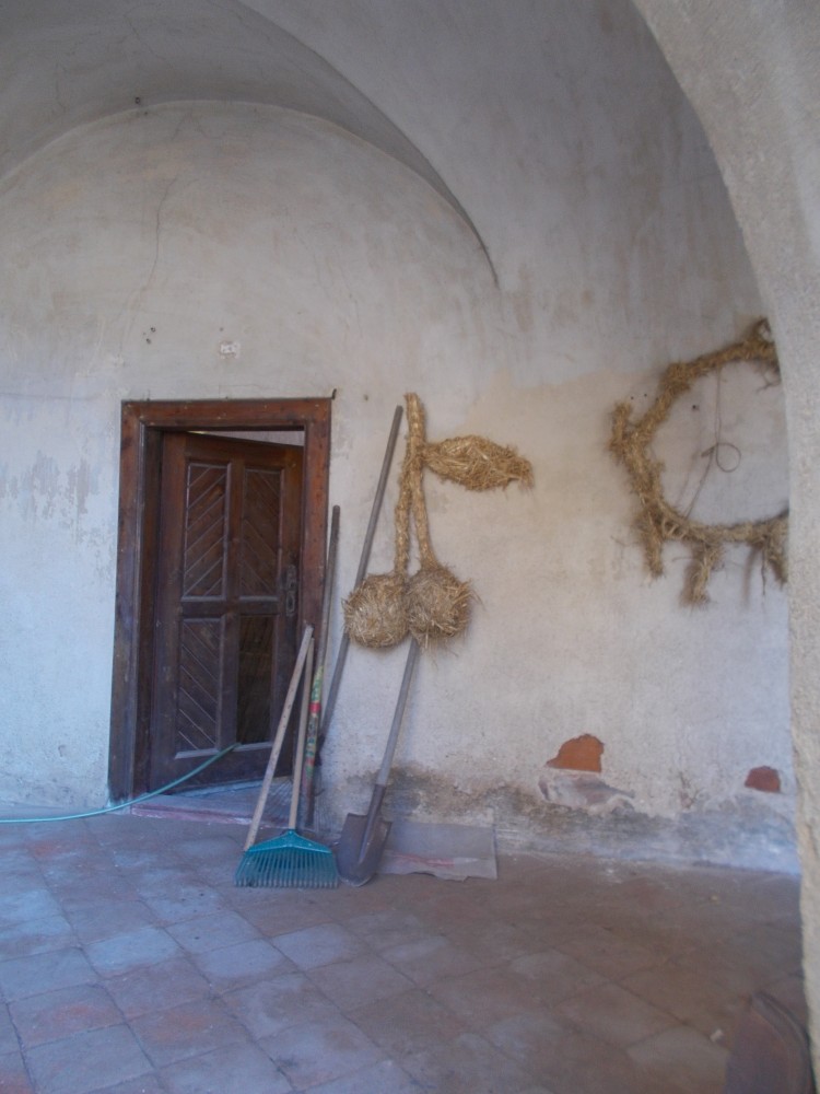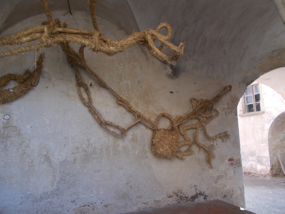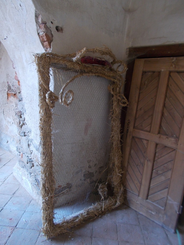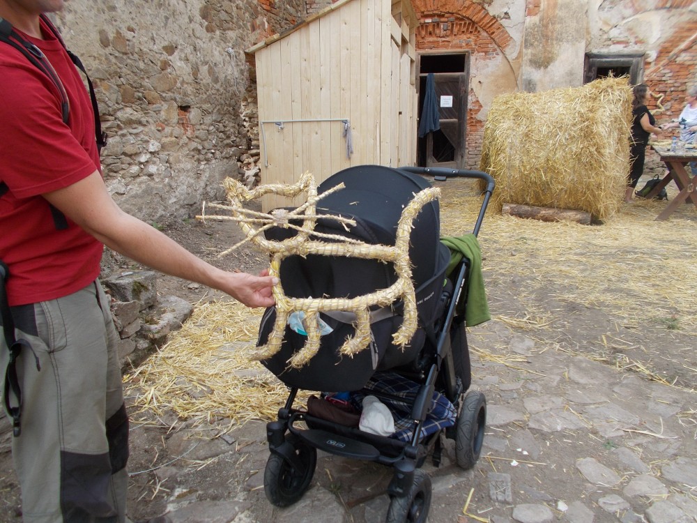 Je sobota a krásné počasí láká k výletům. Využiji tip "íčka" a jedu se podívat na slámování na zámek Červená Řečice. Je jen 40 km od nás, v 10:00 jsme na místě. Na nádvoří jsou už připraveny balíky slámy, po stranách dráty a provázky.