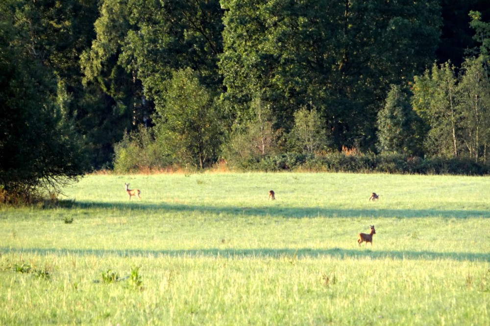 Je po šesté hodině ranní a louka Nad pekárnou se už koupe ve slunečním svitu. Nad zoraným polem, kde před časem stálo zlaté obilí, se zvedá mlhavý opar. V dálce se pasou čtyři srnky a asi tak pět volavek loví myši. A co jich tady je, těch myší. Rex strčí čenich do jedné díry a myš vyběhne druhou a pod psím ocasem kolem mé nohy se dává na útěk. Ještě, že mám gumáky, myší se dost štítím.