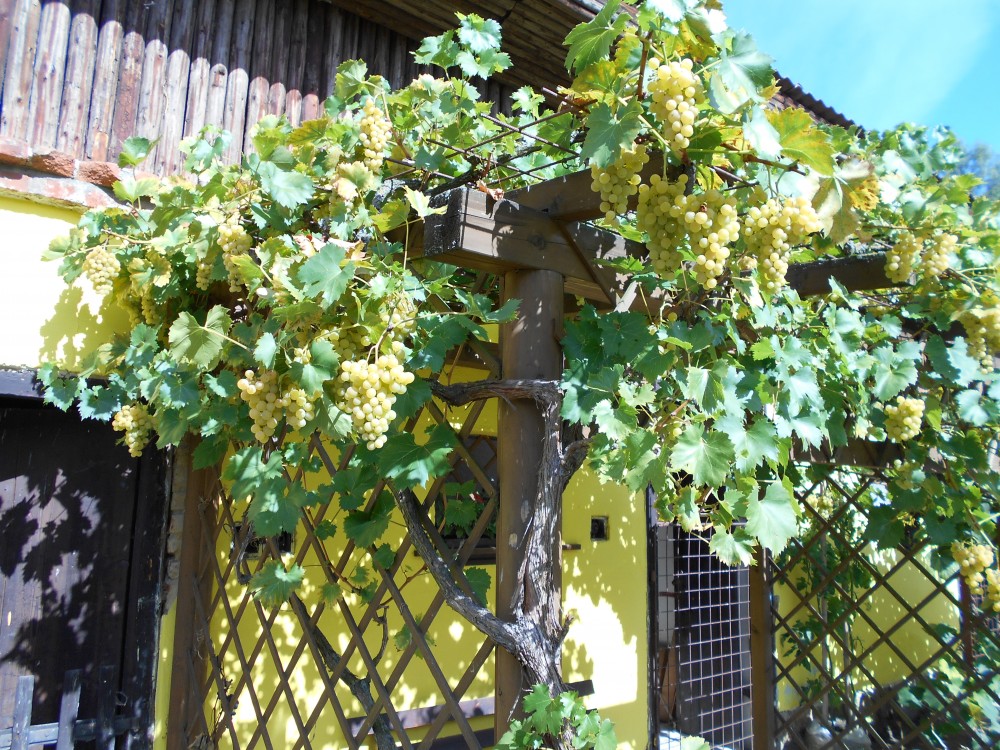 Hrozny byly pěkně prozářené sluncem, mohli jste posedět a pozorovat jak vosy, tak sem tam nějakého sršána. Utrhnout si dozrávající hrozen, dát příbuzným a známým ochutnat.