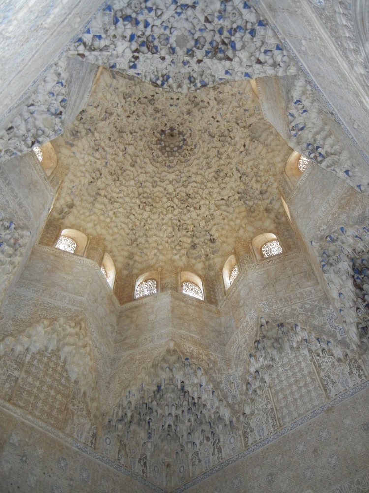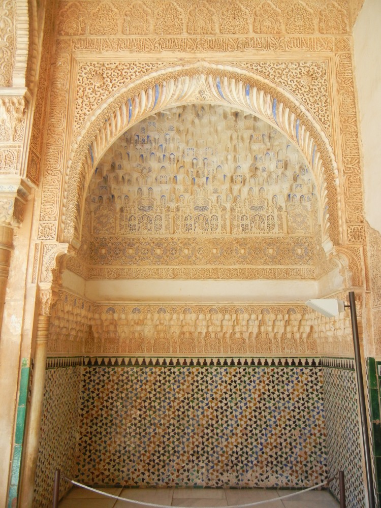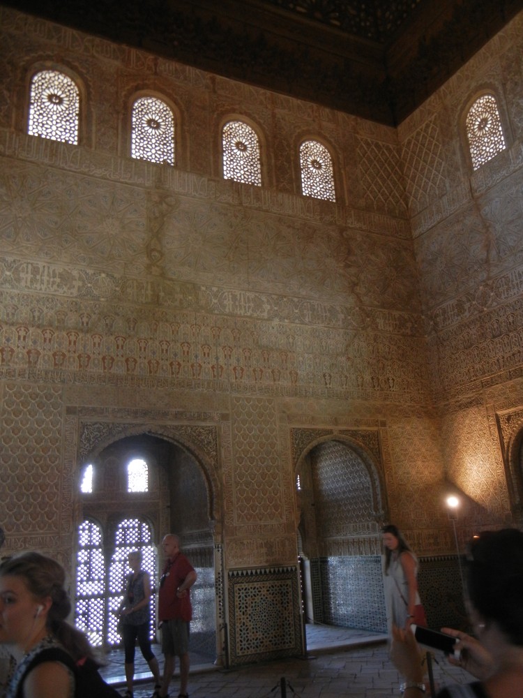 Komplex paláců a zahrad středověkých muslimských vládců se táhne spolu s pevností nad městem. Pevnost - Alcazabu, i když je zde nejstarším místem, pro tentokráte vynecháme, je podobná té v Málaze. Necháme se okouzlit precizní nádherou sídla maurského panovníka. Sličné dámy z harému, jistě početného, nahradili turisté ze všech koutů světa. Je tu rušno, blýskají fotoaparáty, nad vším bdí oko pořadatele, usměrňující tok návštěvníků. Je náročné ve vymezeném čase chtít vstřebat všechnu tu filigránovou krásu vytvořenou před sedmi sty lety islámskými mistry.