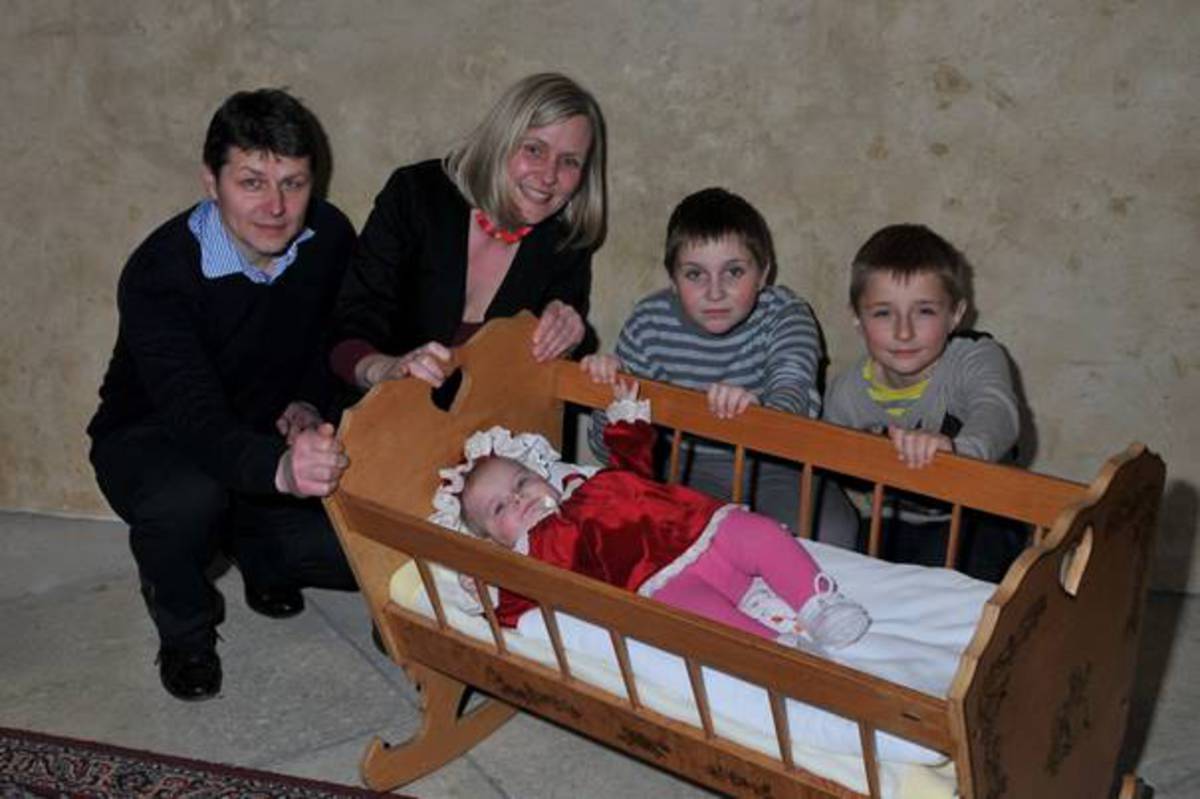 Nově etablovaná rodinnka s malou Kamilkou při vítání občánků na Karlštejně